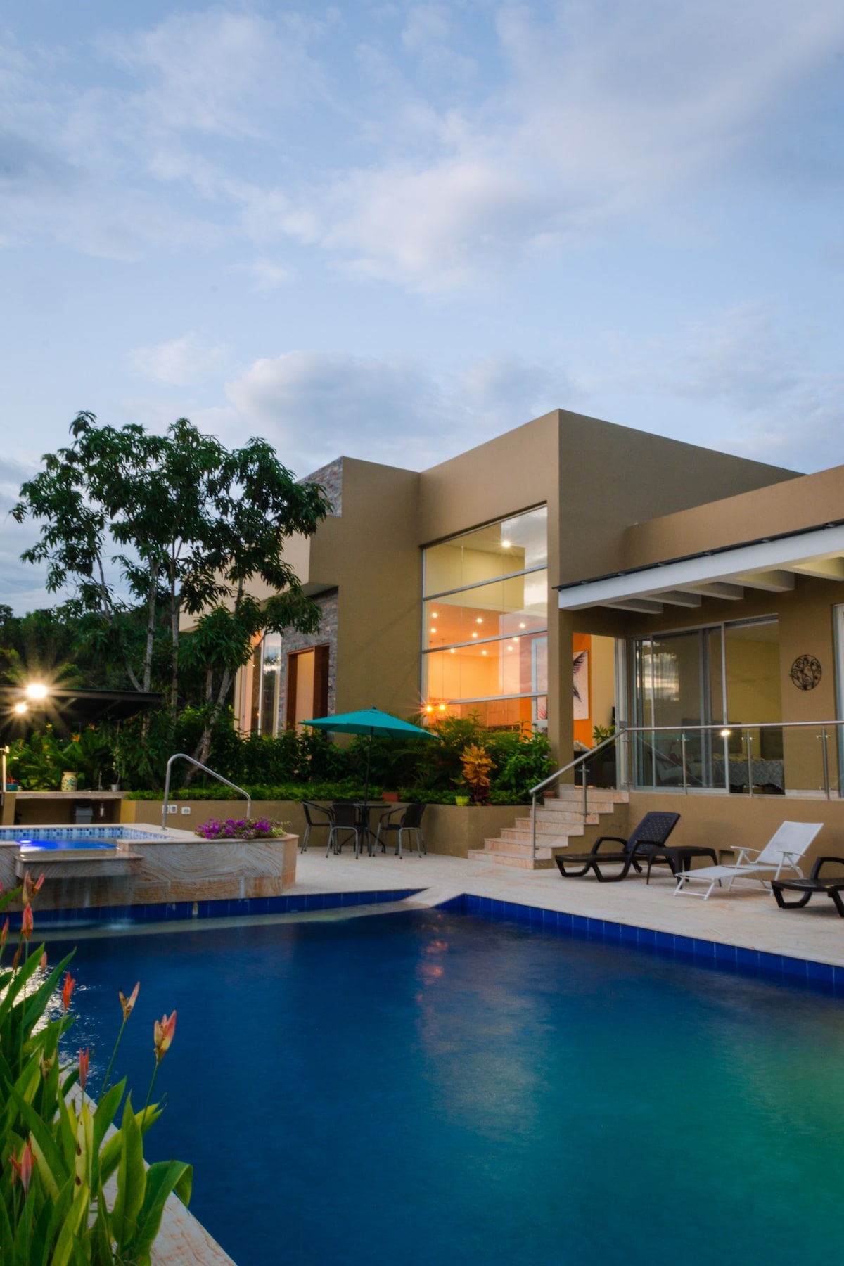 700m2 en un lote de 5600m2 en la mejor ubicación de Entrepuentes, con total privacidad, justo al lado del río, el lago, la sede, el campo de golf, las canchas de tenis y los senderos con seguridad 24/7. 4 habs, 16 pax, piscina privada, jacuzzi, Wifi, Sat/AppleTV, BBQ/tepanyaki, gran palapa social, terrazas/jardines privados. Cocina totalmente dotada, toallas y linos. No dejes tu viaje al azar. TopSpot® — 10 años de experiencia, confianza y estadías felices en las mejores propiedades del país.