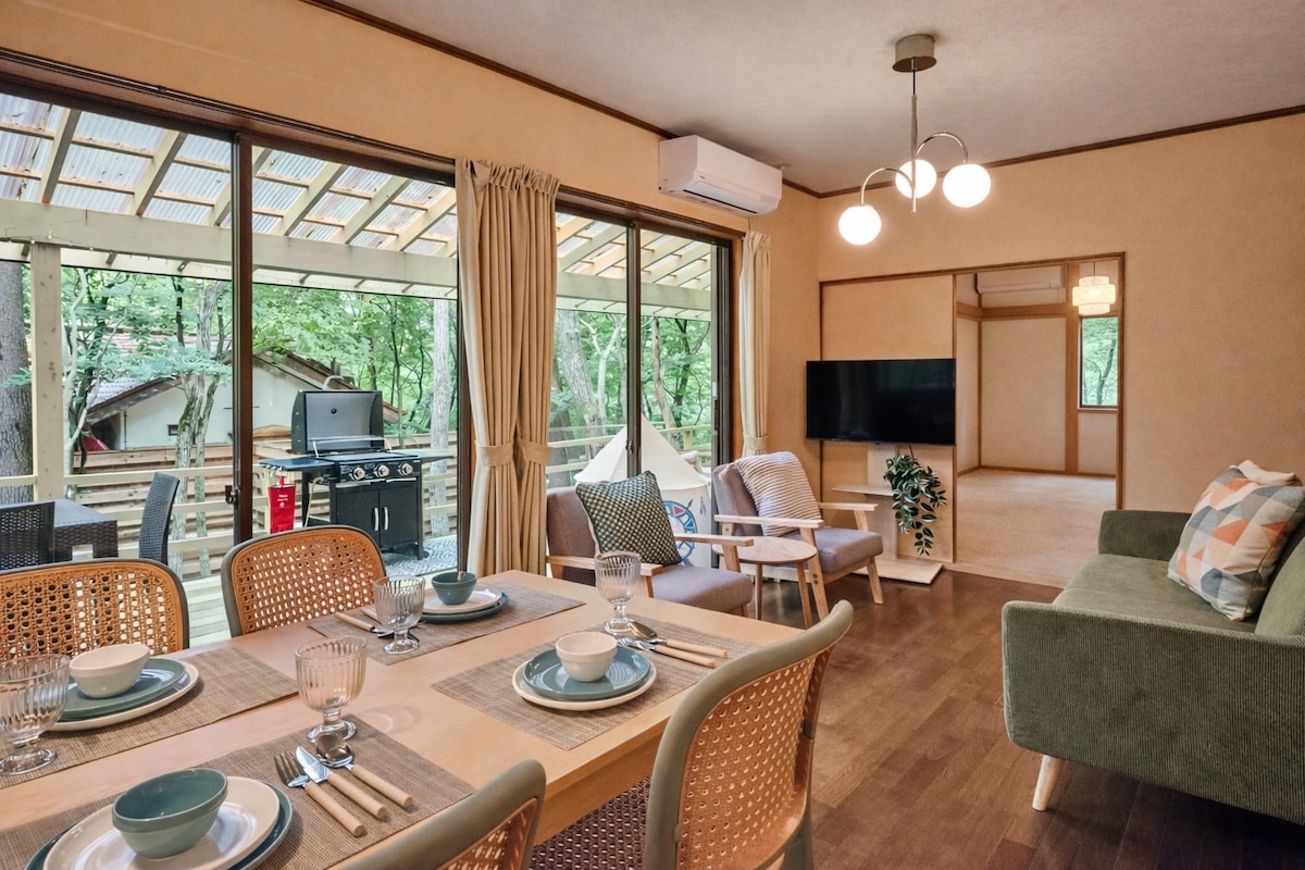 森ã®ç§å¯åºå°ã§èªç¶ãæºå«ãããã±ãŒã·ã§ã³ã¬ã³ã¿ã«ã ãæ äœç©ºéVillaé£é é«åãã¯ãç·ããããªé£é ã®å¥èå°ã®å€§äººãåã©ããã¿ããªã§æ¥œããã貞åå¥èã§ãã åéãšãã£ããéãã ãã芪ããé ããŠä»²éãšèªãåã£ããããç§å¯åºå°ã ããããã®éãæ©ã¿ãæ®æ®µã¯ãªããªãäŒããªããªã£ã仲éãšéãŸã£ãŠãå®¶æãäžç·ã«æ£®ã®ç§å¯åºå°ã«ãè¶ããã ããã æãããéãã ãããã®é ã®ããã«èªãåã£ããã倧人ãåã©ããç¬é¡ã«ãªãã空éãããã«ãããŸãã 屿 ¹ã€ãã®ãŠãããããã«ã¯ãã¢ã¡ãªã«ã³ã¹ã¿ã€ã«ã®BBQã¬ã¹ã°ãªã«ãåããŸããã æ£®ã®æ°é®®ãªç©ºæ°ã®äžã§æ¥œããBBQã«ãèªç¶ãšäŒè©±ã匟ã¿ãŸãã æšåŒµããã¹ã«ãŒã ã®å€§ããªçªããã¯æ£®ææµŽãã§ããŸãã ãã£ãããšæ¹¯è¹ã«ã€ããæ·±åŒåžããã°ãæ¥é ã®å§éšããè§£æŸããããã åã©ããã¡ãå®å¿ããŠéã¹ãããã«ãåºã«ã¯ãã©ã³ã³ãéå ·ãããªãã³ã°ã«ã¯ãã«ããªã³ã°ããã«ãèšçœ®ããŠããŸãã é£é ã®åå£ãæããªããããã€ãã®æã®ããã«ã芪åã§ã©ãããæ¢ãããããããããŸããã