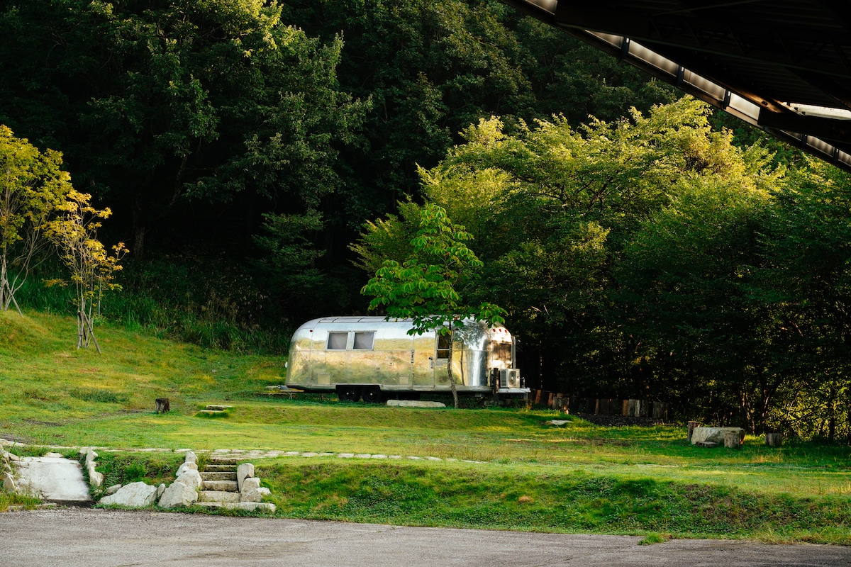 思い出に残る素敵な宿泊先で、自然に囲まれながら、一味違ったキャンプ体験をしてみませんか。 ジュラルミン製のトレーラーハウス"エアストリーム"の中にベッドやソファ、おしゃれな照明などを詰め込みました。設営と撤収が不要で、安心して泊まれる「テント」として利用するイメージ。キャンプ泊ビギナーでも安心して楽しんで頂けます。 キングサイズより少し大きいベッドが1つとシングルベットが1つあり、表示料金でのご利用は大人の枠として3名まで、6歳未満の小さいお子様の枠としてプラス2名までご宿泊頂けます。寝具は3名分までとなりますので、追加の人数分はお客様にてご用意ください。 ​BBQ用の「クラフトグリル」が1つとアウトドアチェア、テーブル、焚き火台、薪が含まれていて、トレーラーハウスの前や後ろにあるスペースでBBQが楽しめます。表示以外の道具や食材は含まれていませんのでご注意ください。 風や雨を避けれるタープのオプションレンタルも御座いますので、チェックイン時にお声がけください。
