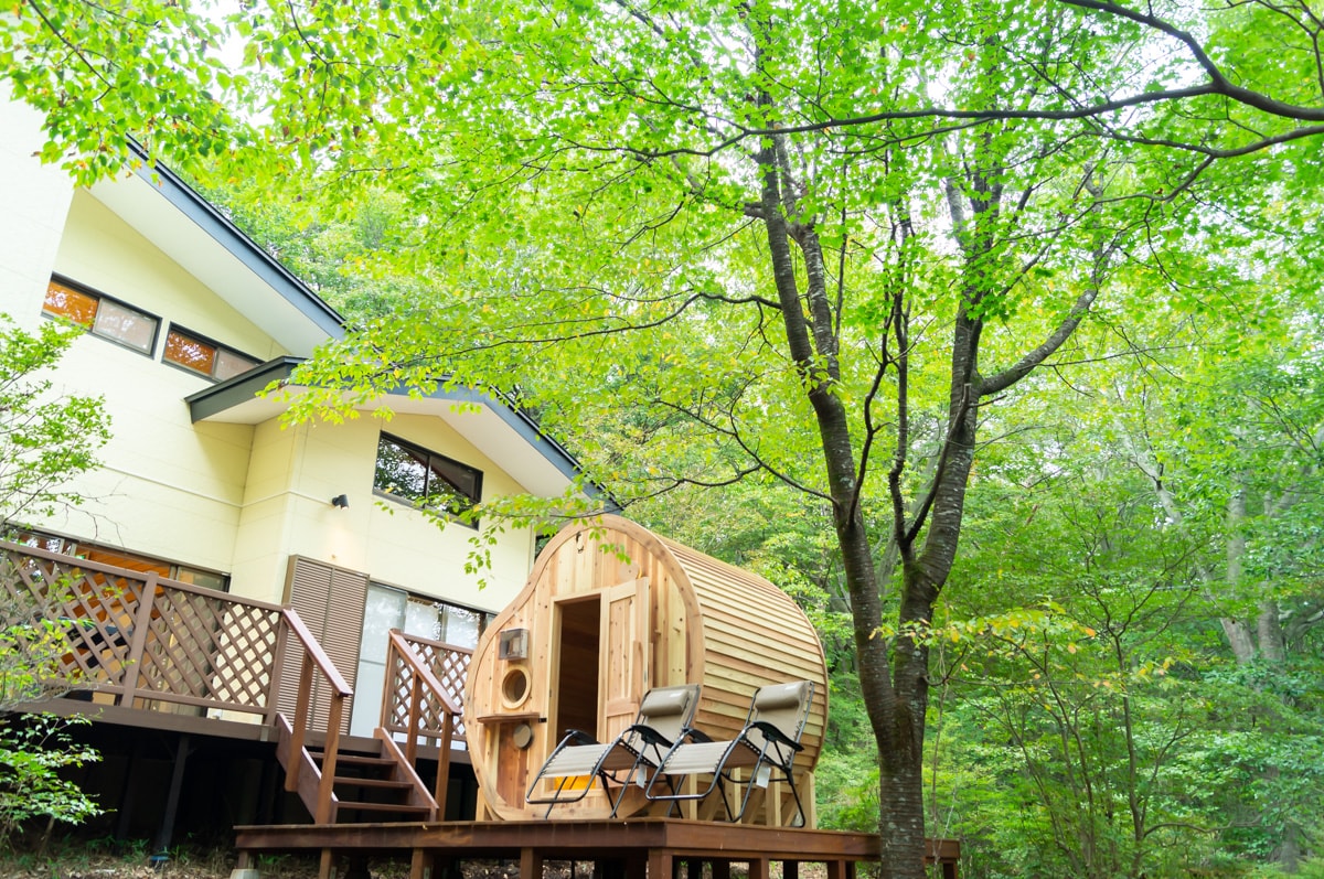 贅沢サウナで森林浴を満喫するモダンハウス Nasu Sauna Stay