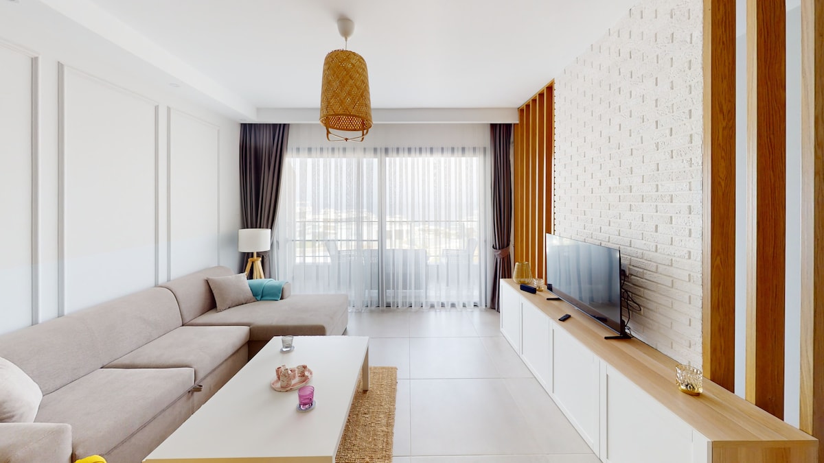 Located 100 meters from Beach, fully equipped unit with free Wi-Fi access. Opening to three balconies, these air-conditioned apartments come with 2 separate bedrooms and 2 bathrooms. It consists of a living room with sofas and smart flat-screen TV, as well as an open-plan kitchen with dining table and oven with hobs. A washing machine, toaster and a hairdryer are included. The paid breakfast is served at a location nearby the apartment. Free gym access at a location 1.5km from the apartment