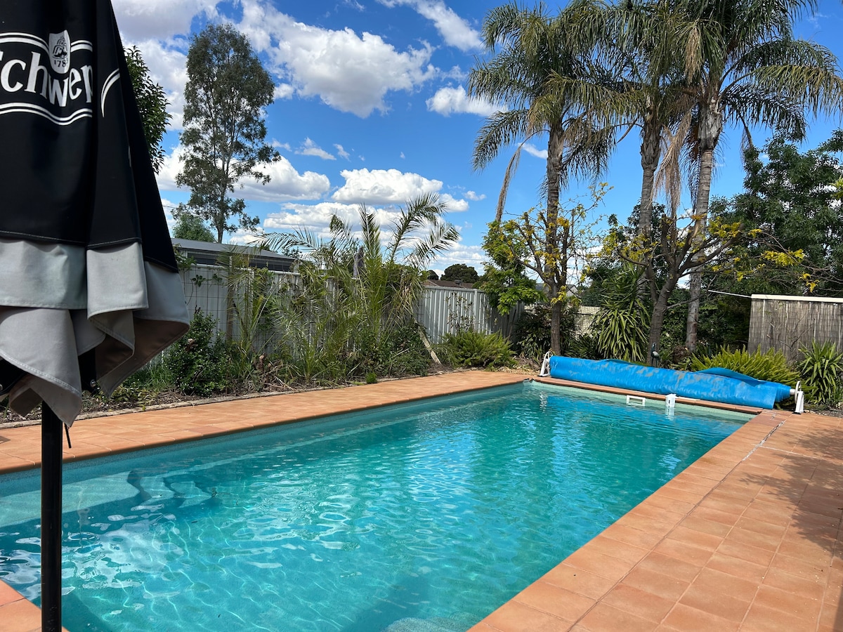 Great location, quiet, comfortable and spacious for larger families. This property gives you easy access to the Murray River, town is only a few minutes drive, and local golf courses are only minutes drive. With 4 bedrooms, 2 renovated bathrooms, this home has been updated with a lot of functional thought. It is perfect for a short or long term stay with fantastic BBQ deck for entertaining. Outside heating for the colder months and fans for the summer. Shade drapes and air con for summer