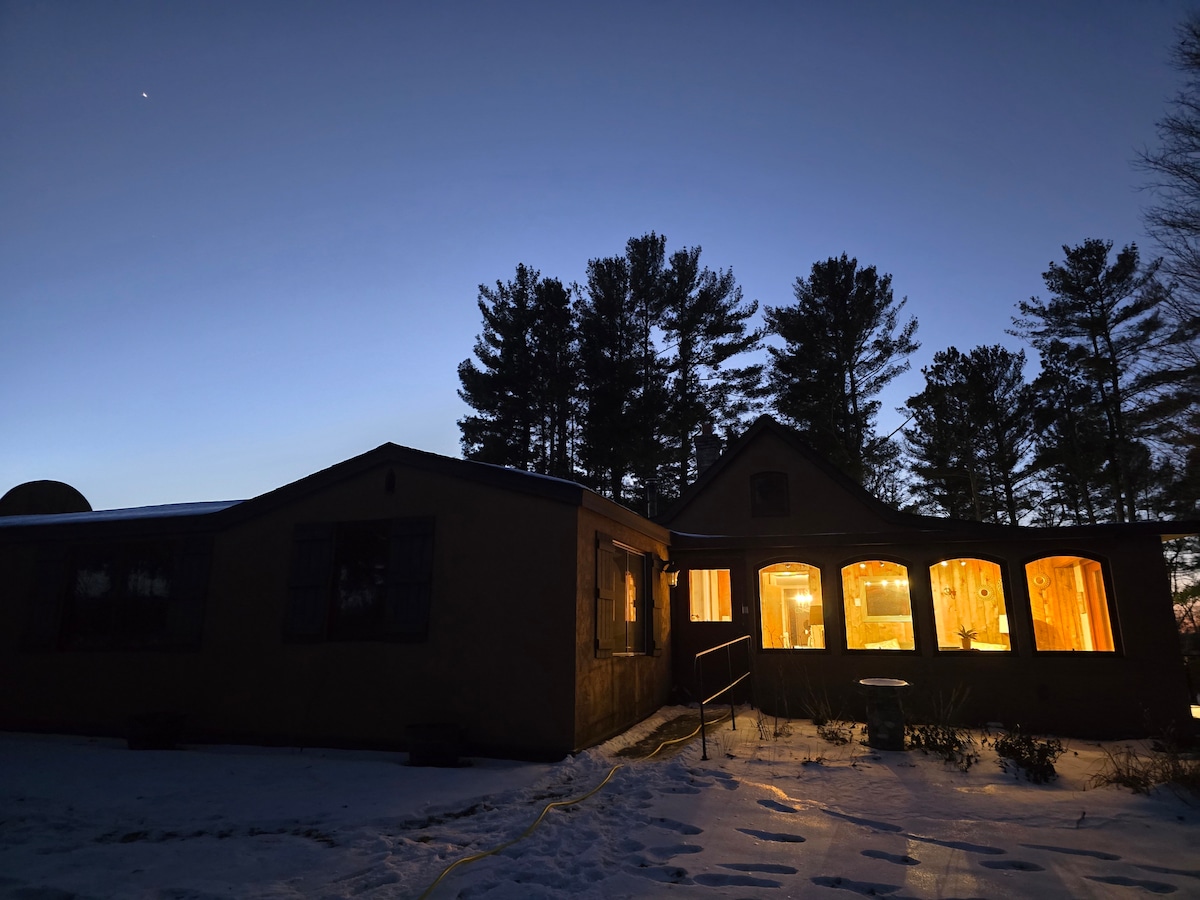 The Maynard Log Cabin was erected by a homesteader after the civil war. We have moved and restored it and made it available for rent. It is off the grid, but it has a complete functioning kitchen, wood stove and sitting room downstairs. There are two antique beds with new mattresses upstairs. There is no electricity but the cabin is furnished with kerosene lanterns. The bathroom facilities consist of wash basins and outhouse. The cabin is surrounded by 40 acres of woods and meadows.