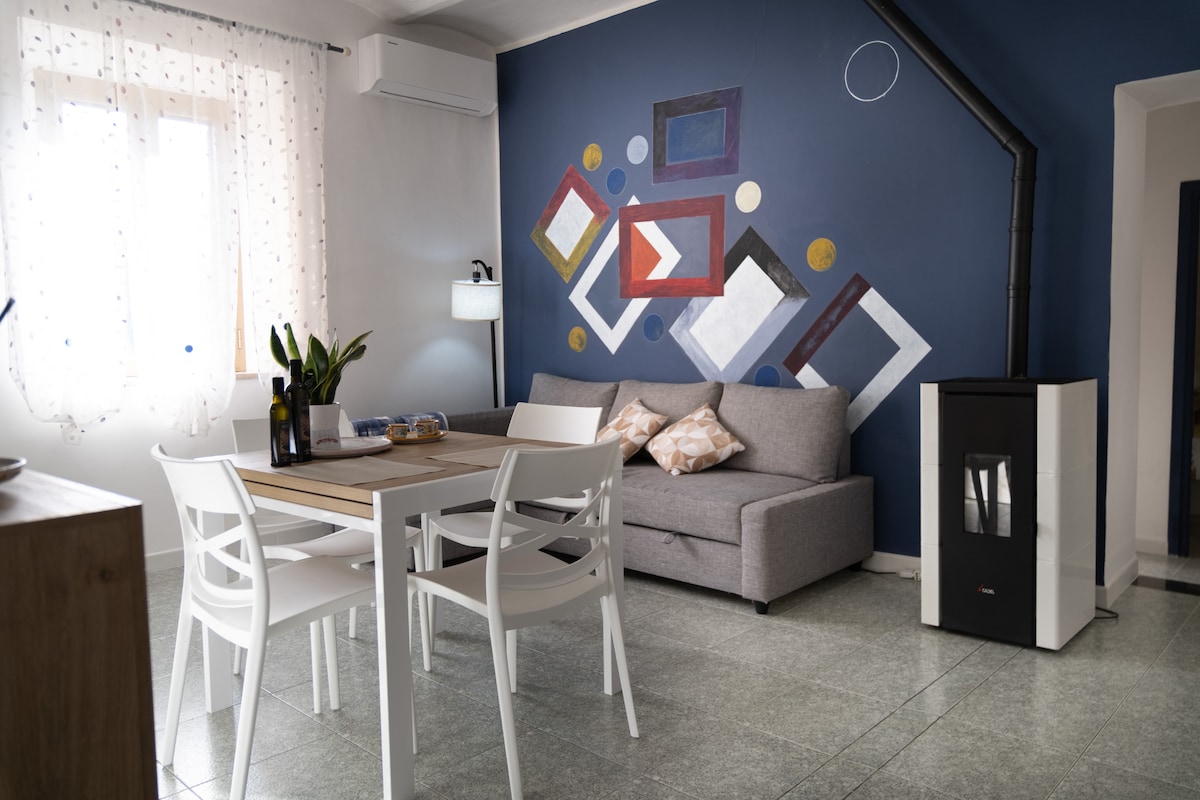 In 2023 my son Guglielmo and I decided to restore the old oratory of a church from the 1600s by creating a two floor apartment: upstairs we have 2 bedrooms equipped with AC and 2 en-suite bathrooms with shower; downstairs a spacious living room with stereo Available a table outside with great view and a nice garden 50 mt away where to have a private wine tasting or barbecue for all the guests of our 4 apartments, after 7pm if booked large in advance Large free parking area 100 mt away