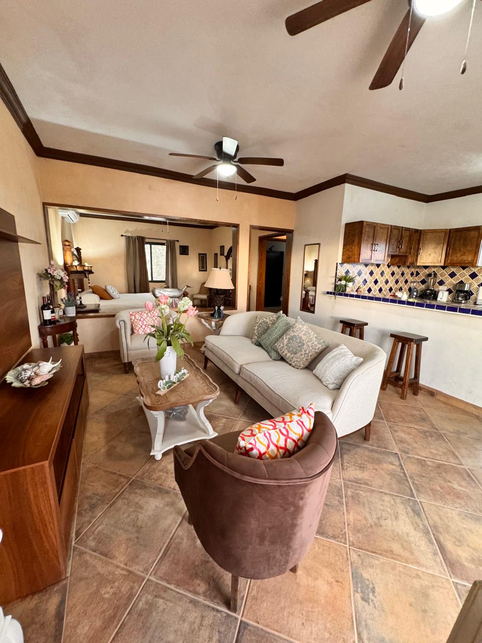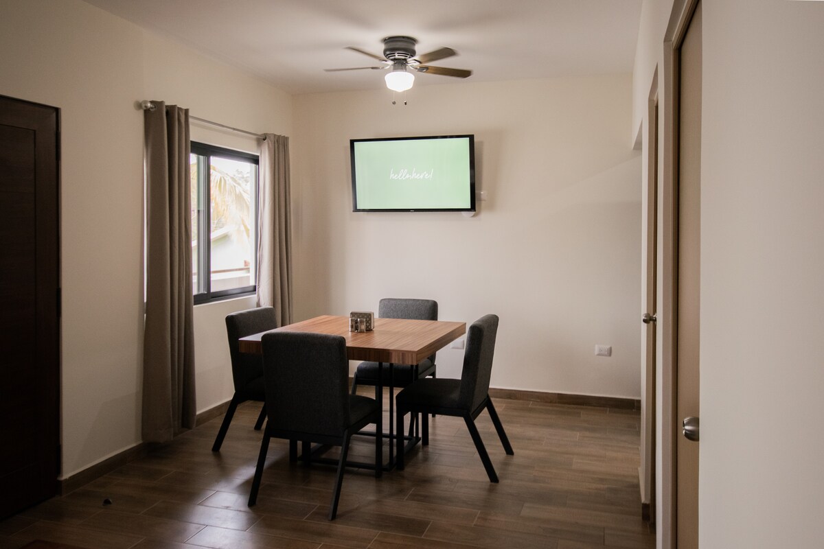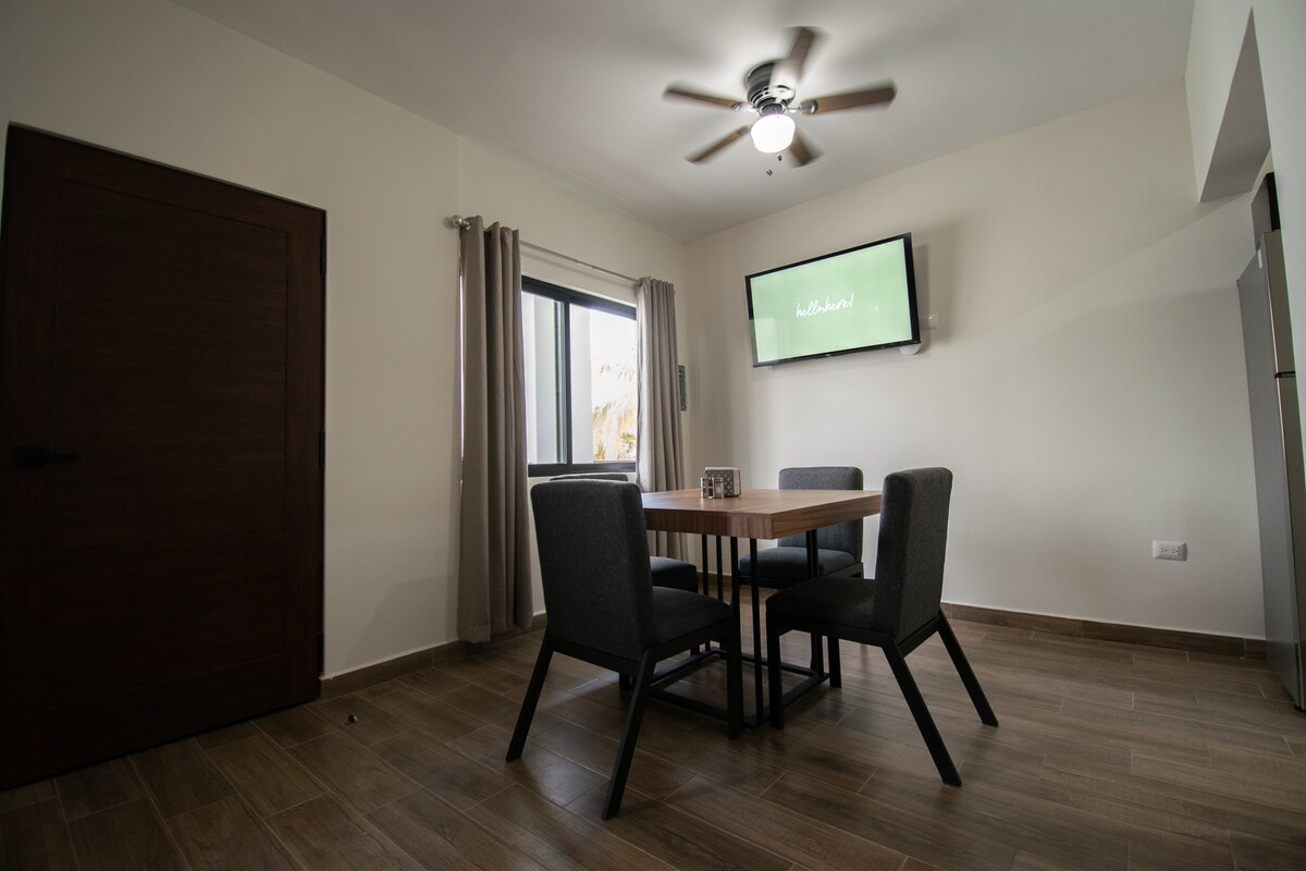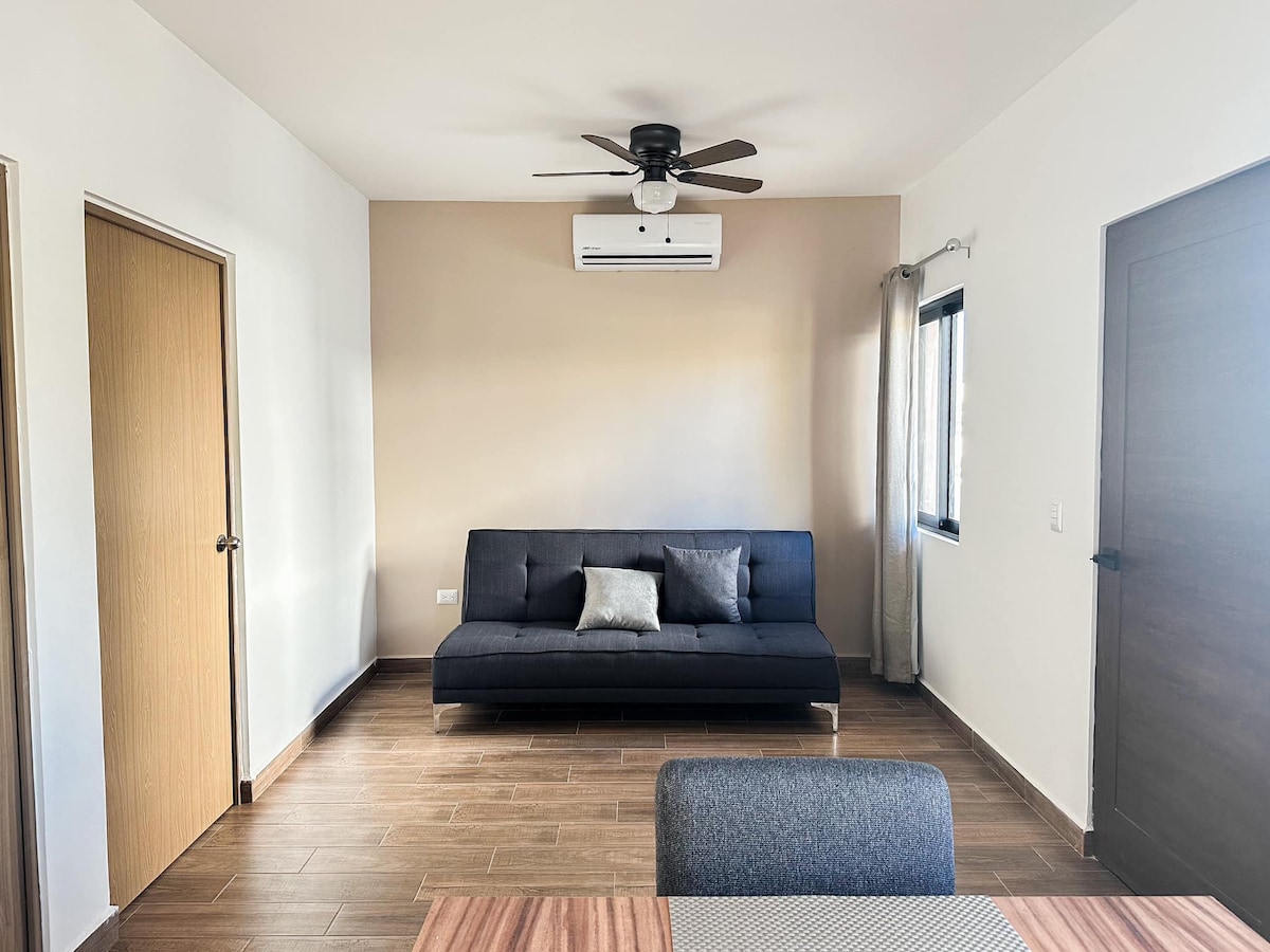 New Apartment!, 1 block from the Downtown, interior patio with hammock to enjoy reading in the afternoon or even sleeping in it. Going up to the second floor and you will have a wonderful view of the orchards, the church of Nuestra Señora del Pilar, you will be in the heart of Todos Santos!. Ideal for walking to the galleries, restaurants, bars, cafes, historical and cultural sites located in the main square of this Pueblo Magico (Magic Town), the beach is only 2 kms away.