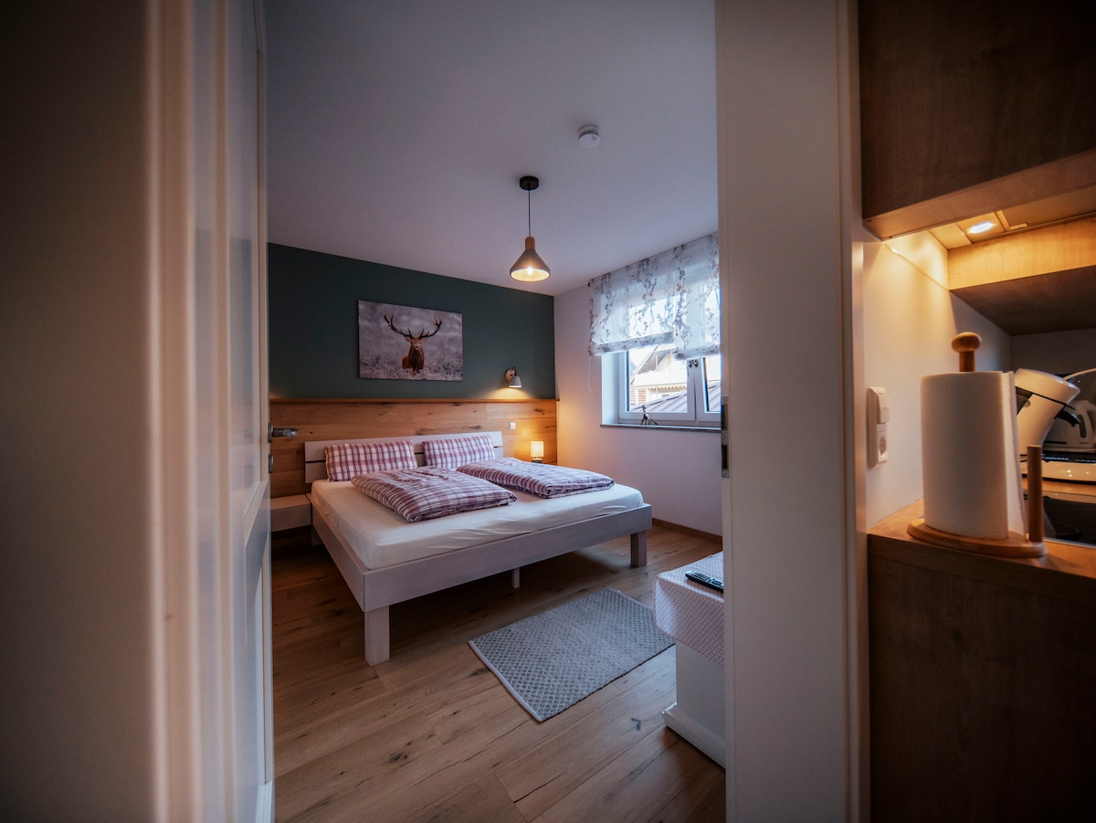 Mit Liebe eingerichtetes 2 Zimmer-Apartment "Herzgrün" (36 qm) für 2 Personen (+ Baby). Traumblick vom Balkon und Sauna im Haus (gemeinschaftlich genutzt gegen Gebühr). Lass das Auto in der Tiefgarage stehen und starte deine Wanderung direkt vom Haus. Viele Sehenswürdigkeiten in der Umgebung. Zwei Skiliften sowie Langlauf-Loipen fußläufig (bei guter Schneelage)