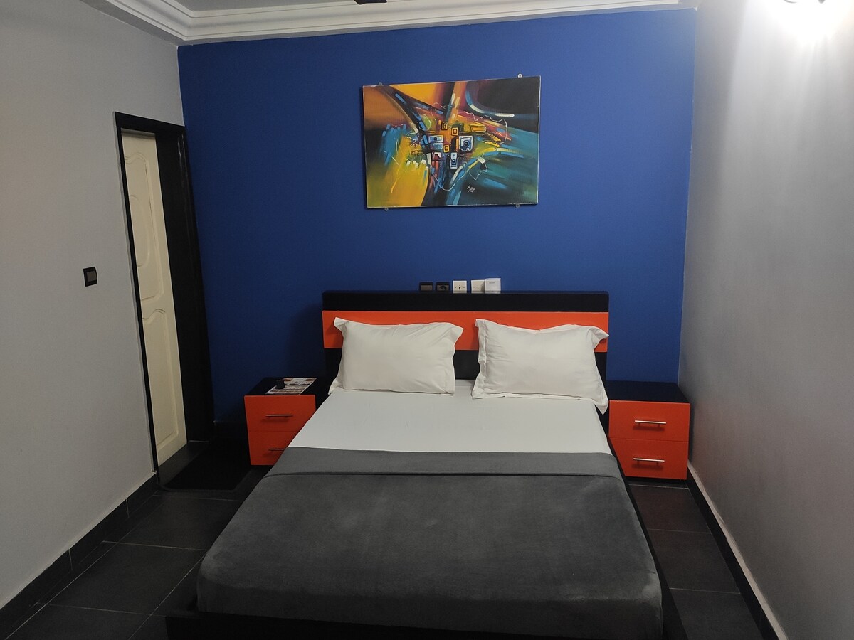 Bamboo Lodge - Orange Room This charming accommodation is located right in the center of Lomé. We're surrounded by supermarkets, bars, restaurants and more. You'll be staying in a standard room, with private bathroom and toilet, and can accommodate 2 people. The price is for one person with breakfast. The second person will pay a supplement of 15 EUR on site.