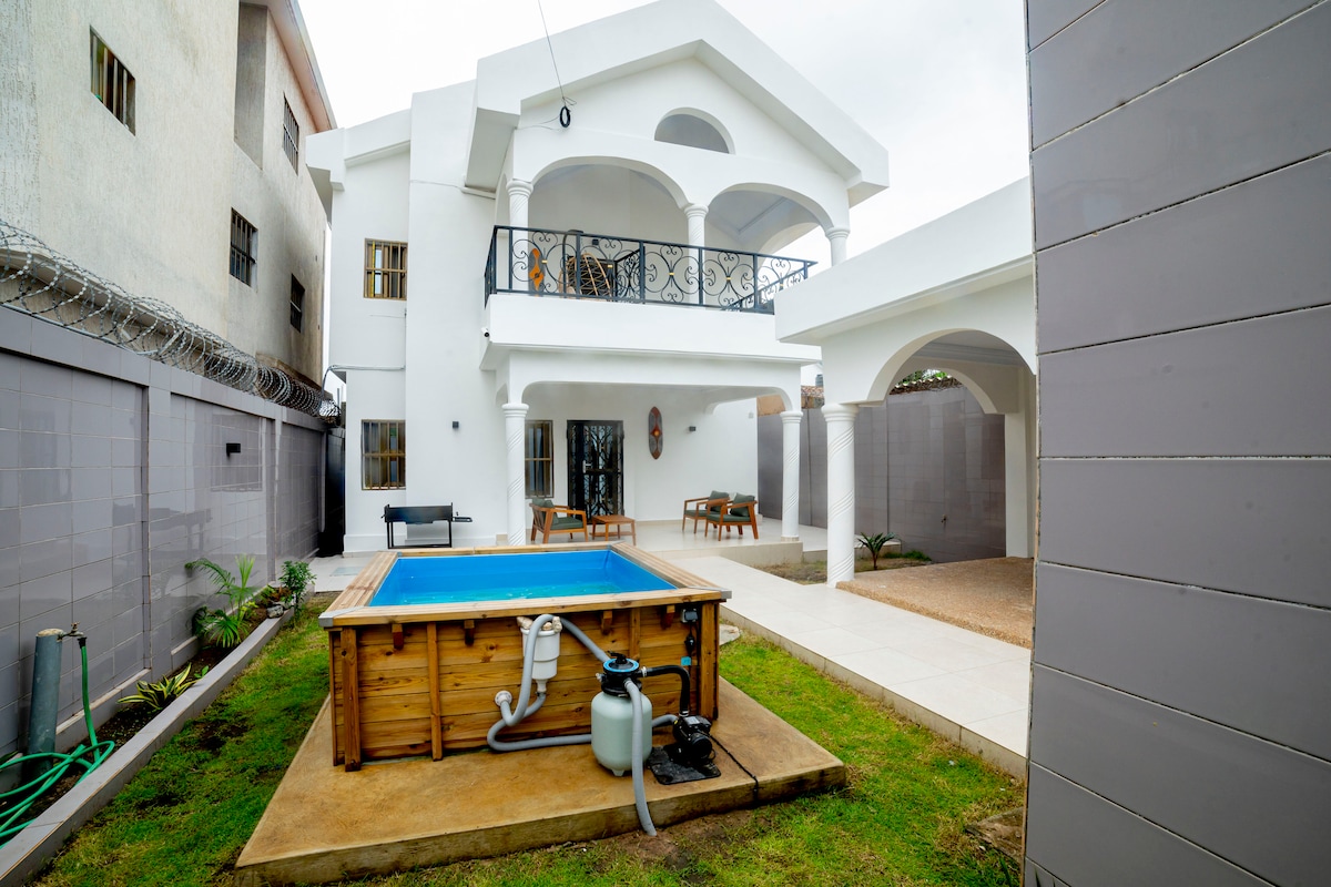 Petit Hambourg - Villa with pool - for your luxury vacation only 2.9 km from the beach. Enjoy your stay in this exceptional accommodation. A magnificent, modern guesthouse, a very comfortable haven of peace. A little Away from the hustle and bustle of Lomé. You rent a building with 3 bedrooms,for yourself and your travel companions (max 6 people) alone. Le Petit Hambourg is 2.9 km from the Turnaround Baguida Monument on the devego Road on a sandy road.