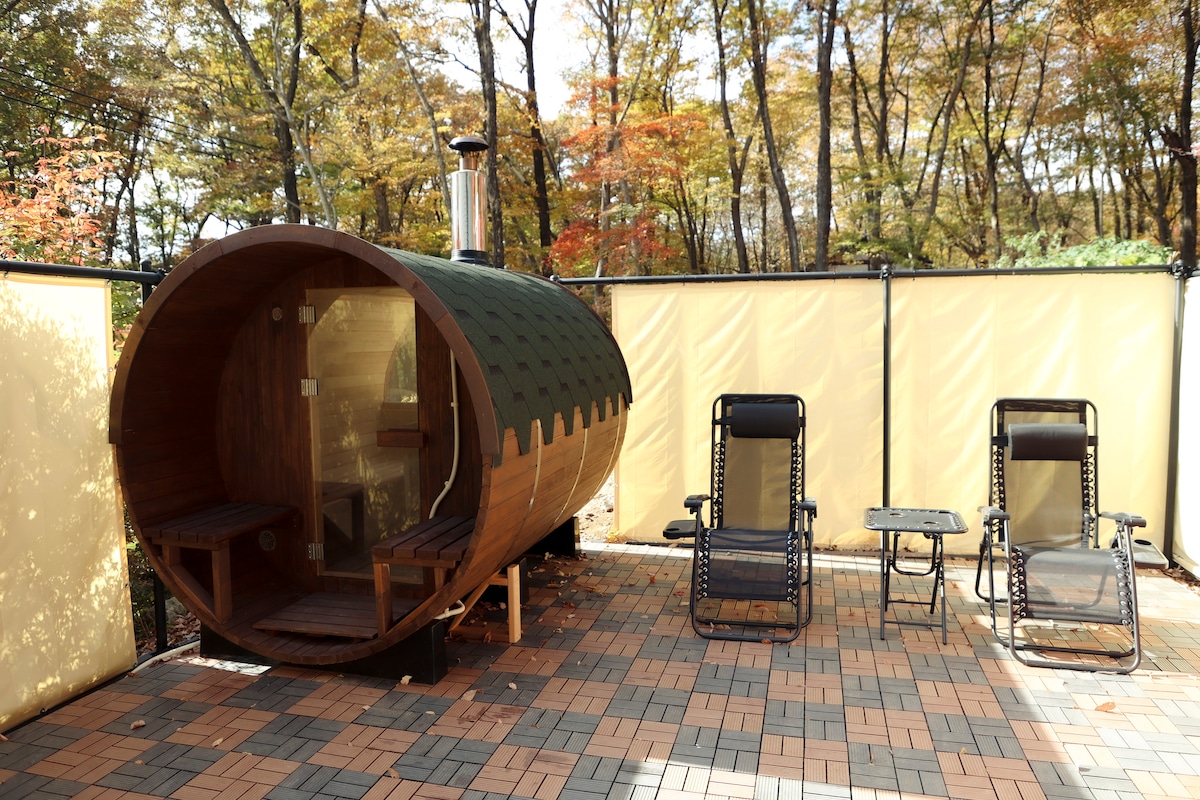 儿童也能享受的森林秘密基地/11点退房/美式烧烤体验/在私人别墅中尽情享受大自然