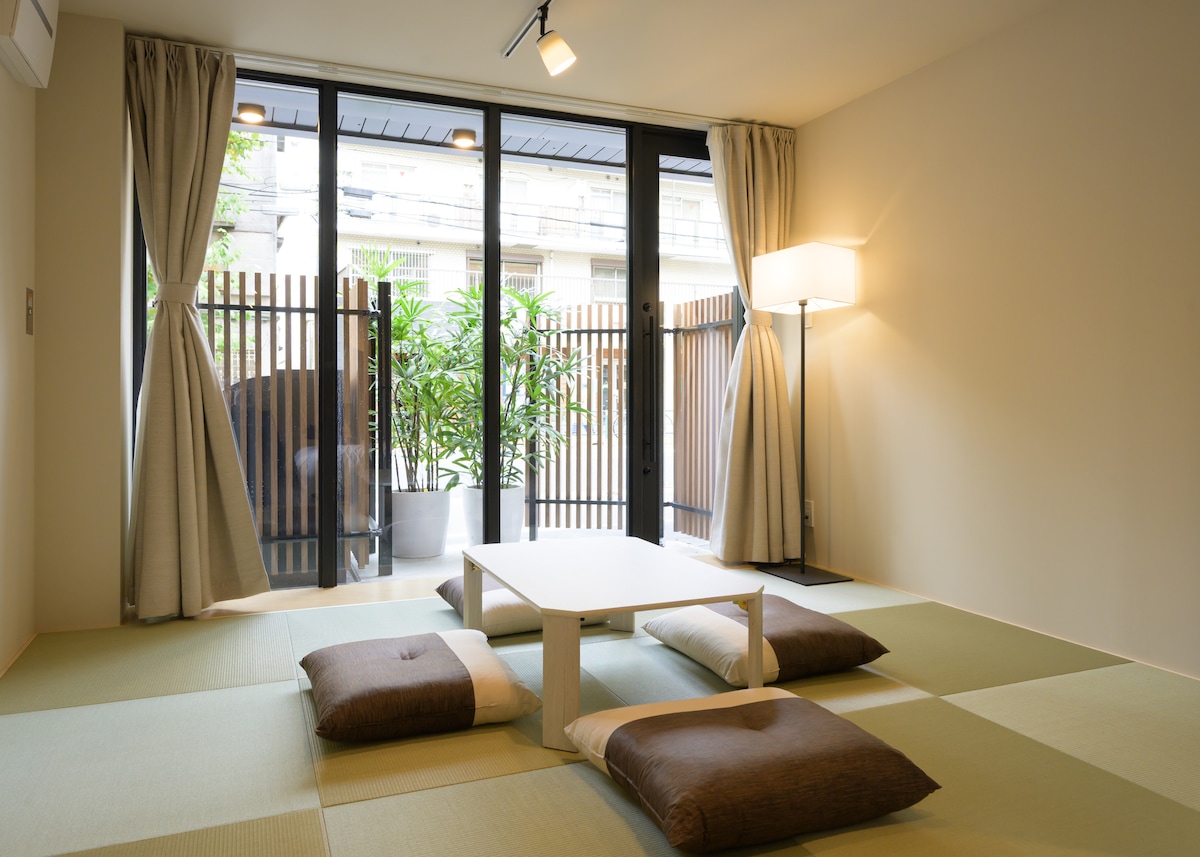 穿过祇园的石板小路,您将进入一个现代与传统完美融合的空间。这不仅是一个住所,更是一个能感受京都文化与历史的特别体验。在这里,您可以放下繁忙的日常,沉浸在祇园的优雅与宁静中,享受真正的放松时光。 步入公寓,宽敞的客厅和一张快适的沙发等待着您,为您提供理想的休息空间。阳光透过窗户洒在温暖的木地板上,带来宁静而温馨的氛围。 公寓内设有设备齐全的私人厨房,可在附近市场购买新鲜的京野菜和当地特产,享受自己动手烹饪的乐趣。或者,探索附近的老字号日式料理店和现代咖啡馆,品味正宗的京都风味。 公寓位置优越,步行即可到达祇园四条站和三条站。八坂神社、花见小路、知恩院等京都地标性景点近在咫尺。春樱、夏绿、秋枫、冬静,四季更迭中的京都美景,都在您身边等待探索。 客厅还配备了互联网电视,您可以在一天的探索之后,坐在快适的沙发上观看Netflix、YouTube等您喜爱的影片,享受轻松愉悦的夜晚。 在这座历史与现代交汇的城市中心,度过属于您的独特时光。让您的每一次停留,都成为一次心灵的治愈之旅。