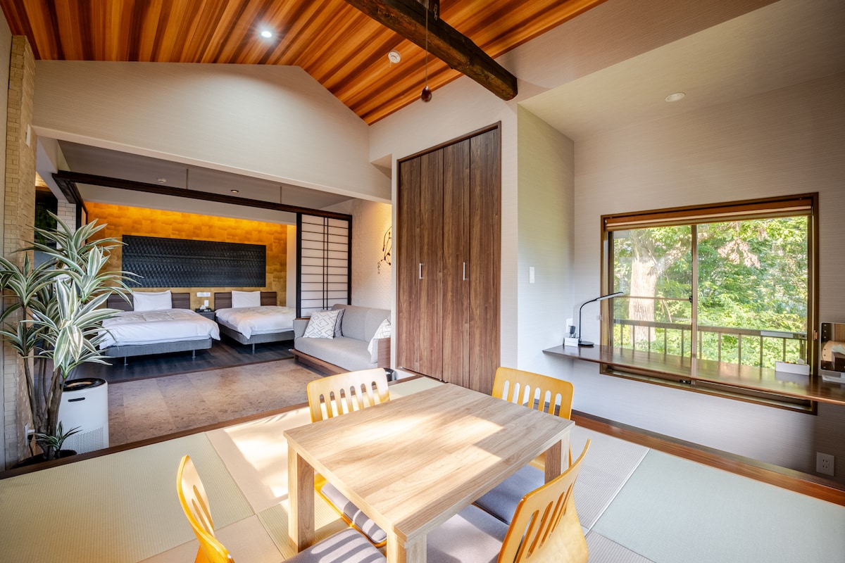 可以携带宠物!位于自然豐富的国家公园内,有天然温泉和迷你游泳池的别墅