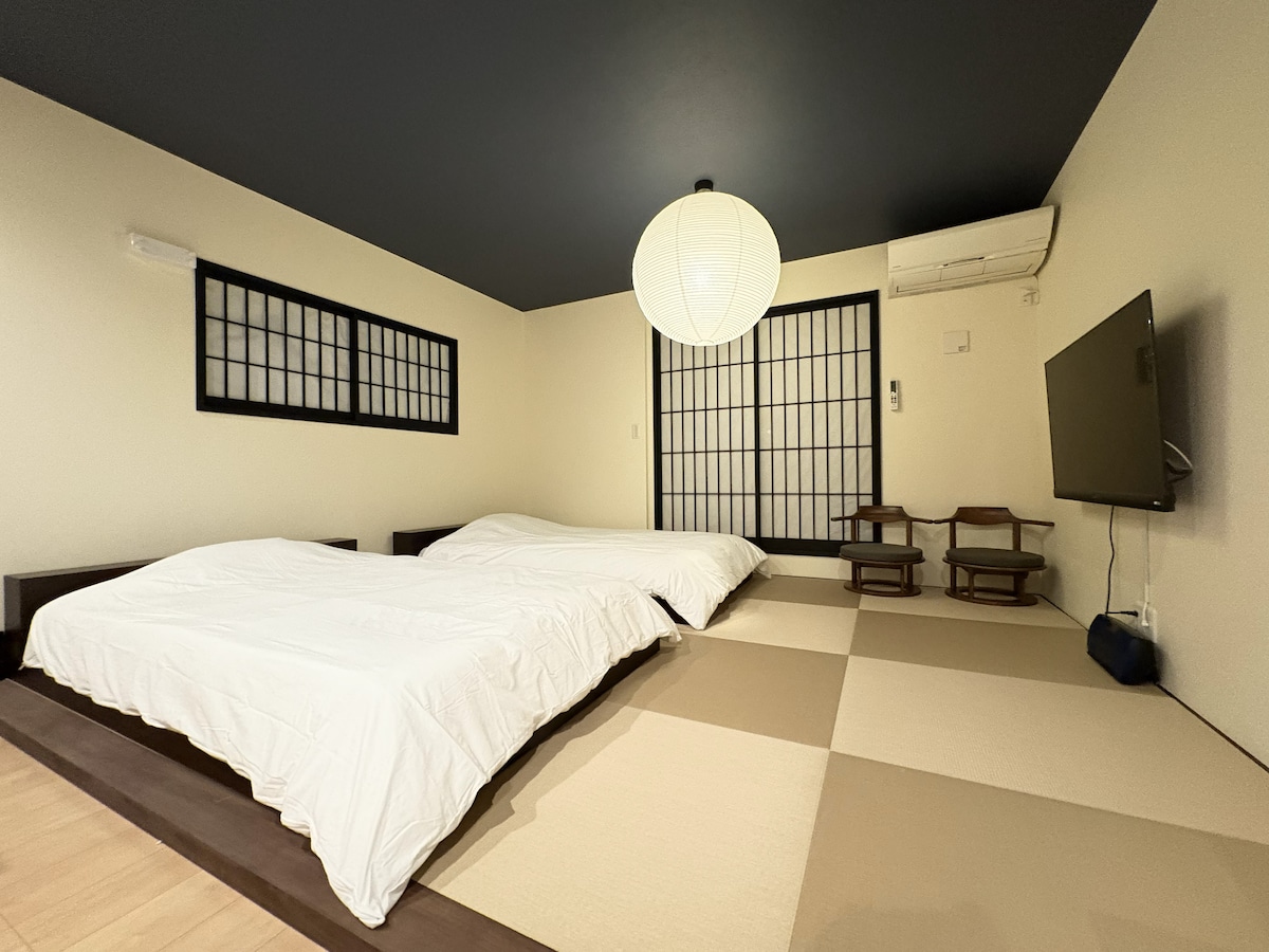 由于只预订了一间房子,而且仅限于一个团体,您不会遇到其他人,您的隐私也会得到保护。 何不在一个安全可靠的地方养精蓄锐呢? 从三条京阪站步行 10 分钟,从东山站步行 4 分钟,附近有超市和便利店,还有许多餐厅,可以让您度过舒适的住宿时光☆。 您可以在河原町和祗园尽情享受京都的乐趣,回家后还可以放松休息。 京都不虚此行。 如果只是旅行,那就太浪费了! 何不在地理位置优越的家中度过温馨的时光呢? 虽然是单间,但天花板很高,室内也很宽敞。 这里有两张宽大的双人床,让您放松身心,舒适入眠。 酒店位于京都市中心的东山三条,最多可容纳四人! 虽然位于京都市内,但一踏入酒店,您就会发现这里有一个专为客人准备的特殊空间。