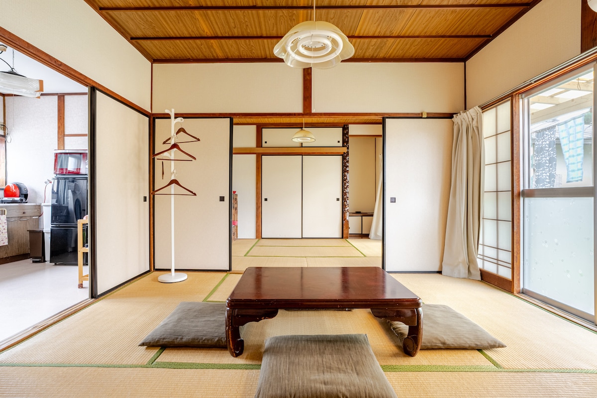 This is a Japanese-style room. 【How to spend your time】 ・Wi-Fi and power tap available. ・There is also a mini kitchen, lounge, and free washing machine and dryer. ・Online meetings are possible in your room or lounge. ・Free drinks available. ・It has a homely atmosphere, so it is recommended for people who want to interact with other guests and the host.