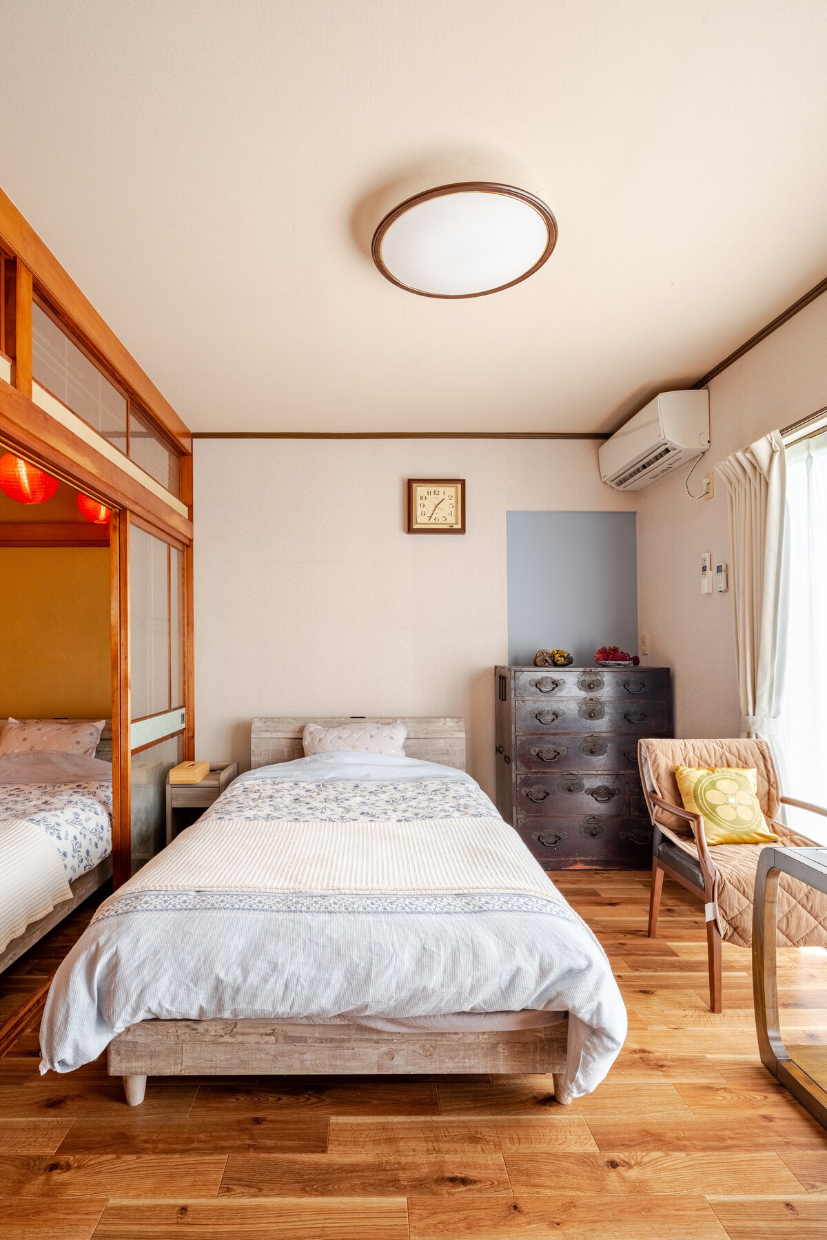 This guesthouse is a renovated traditional Japanese house reminiscent of a ninja residence. Please relax and enjoy the nostalgic atmosphere of old Japan. Conveniently located just a 5-minute walk from Tokoname Station (2 stations from the airport) and a convenience store is a few steps away. Rinku Beach, Costco, and Aeon Wall is within 5 minutes by car. There are no hills on the way to the guesthouse, so you can feel at ease even with large luggage.