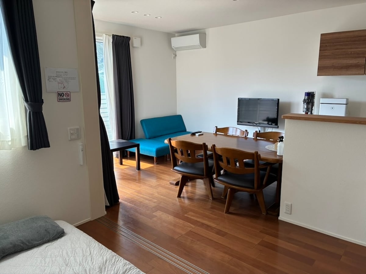 3名利用なら、1人あたり約8,500円〜で宿泊可能。早割、連泊割引あり! ビジネスホテルよりも、広く・快適でコストパフォーマンスの高い滞在ができます。 45㎡のゆとりある空間で、キッチン、洗濯機、無料駐車場など長期滞在向け設備がありストレスなくお過ごしいただけます。 ■ お部屋の特徴 ・45㎡の広々空間(1LDK相当) ・最大3名までゆったり宿泊可能 ・スーツケースを広げても余裕のある設計 ■ 長期滞在にも最適な設備 ・キッチン(自炊OK) ・洗濯機(連泊に便利) ・バス・トイレ別 ・無料駐車場あり → 出張・ワーケーション・観光の拠点に最適 ■ こんな方におすすめ ・2〜3名でコスパよく泊まりたい方 ・ビジネスホテルの狭さに不満がある方 ・長期滞在・出張・旅行で「生活できる部屋」を求める方 ホストは2階に住んでおりますが、1階と2階は完全に独立しているので、プライベートは保たれております。ただし、2階に小さな子供がおり、足音が響く可能性がございますので、その点はご了承お願い致します。 ゲスト様に寄り添ったお迎えができますよう心がけております。