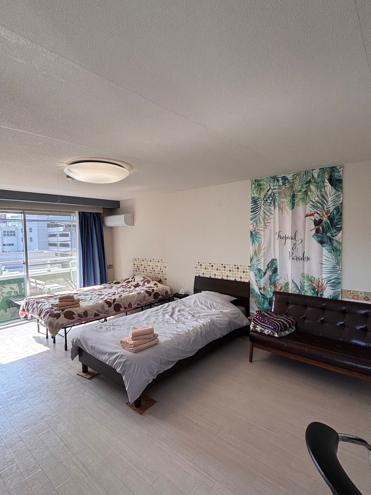 【日式和西式客房】5室一厅家庭房,最多12人