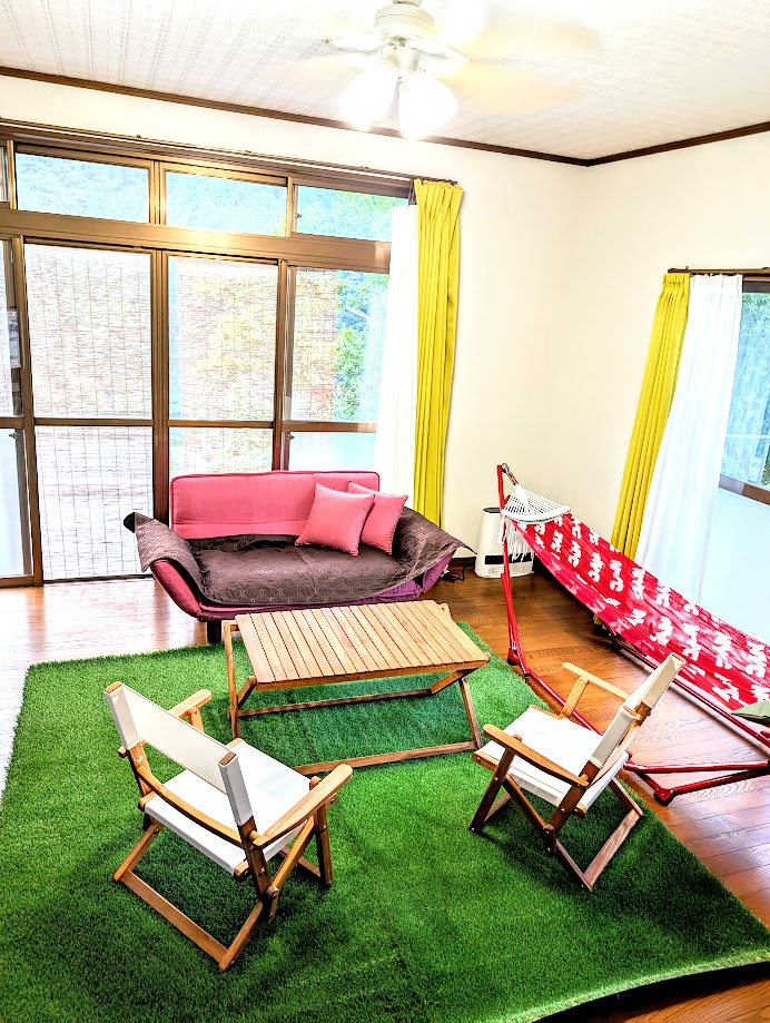 This is not a hotel. This is rural Japan. Garbanzo House is a private traditional kominka near the Yoshino River in Kochi. Only one group per day. The river is a 5-minute walk away. A small rural train line runs beside the house, and sometimes a local train passes by. At night, it becomes very quiet and the sky fills with stars. There is no TV. Listen to the river, birds, and insects, and experience the rhythm of rural Japan.