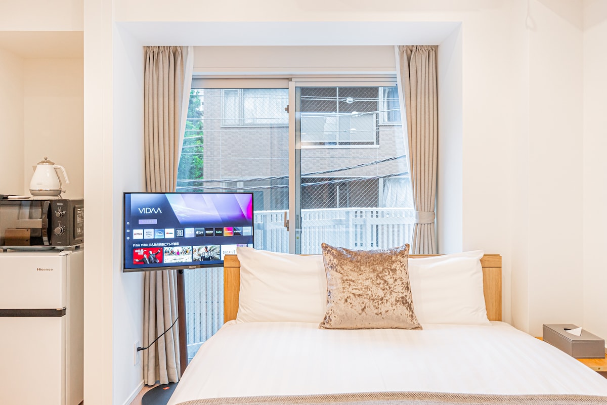 【新开放】东京市中心的涩谷站步行 3 分钟即可到达,交通便利,环境安静祥和(步行 2 分钟即可到达新开发的新出口)。毗邻涩谷新地标设施 "涩谷樱花舞台",步行即可到达惠比寿和代官山。这里有众多时尚餐厅、咖啡馆和商店,是一个绝佳的地理位置。 新的现代化公寓楼的房间非常干净舒适。请与您的爱人共度一个非同寻常的私人空间。 卧室配有两张舒适的大双人床和一个大屏幕,您可以在观看电影等活动中放松身心。 我们提供适合长期居住的设施和便利设备,希望您与亲人在这里度过美好的时光。 提供设施:免费Wi-Fi / 两台空调 / 大型冰箱 / 带加湿功能的空气净化器 / 带烘干功能的洗衣机 / 熨斗 / 厨房用品等 ※所有家具和电器都是全新的,即使长期居住,您也可以在这里舒适地生活。 ・配备了投影仪和大型屏幕(100英寸),您可以在房间内享受娱乐。 ・提供丰富的存储空间。