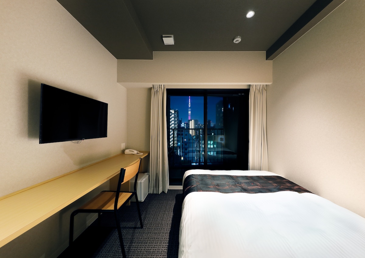 【*晴空塔下*双人间501】安全消毒/微波炉/工作区域/行李寄存/电梯/独立卫浴/近押上站