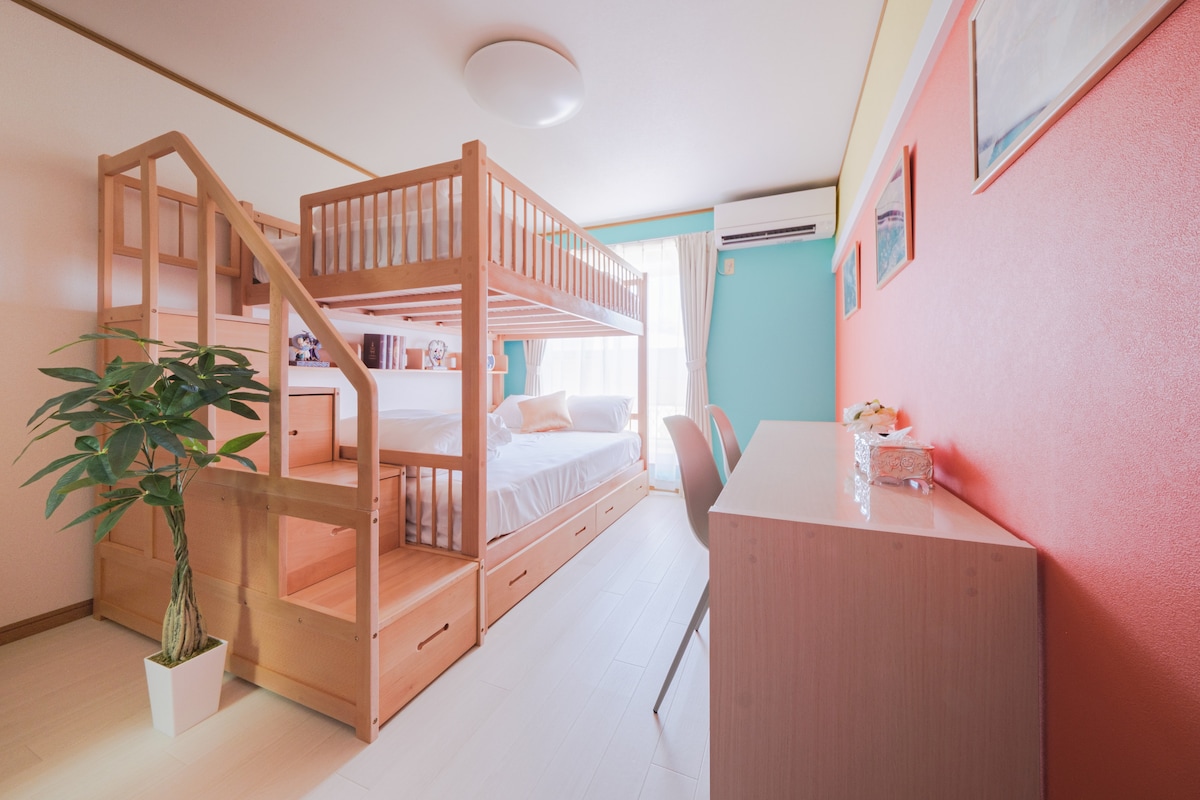 Continue your Disney dreams in a colorful mini museum 🎨🍭 🏰 9 min drive to Tokyo Disney Resort! In a quiet Urayasu area, this cozy, cute room features art decor and a double bunk bed for up to 4 guests (tight for 4 adults). 🚏 2–3 min walk from Horii 6-chome & Horii Higashi bus stops, easy access from Maihama, Shin-Urayasu & Urayasu 🚌 Enjoy Dyson & ReFa beauty items 💆♀️💕 3rd floor, no elevator. Free nostalgic snacks at our Dagashi Corner 🍪✨