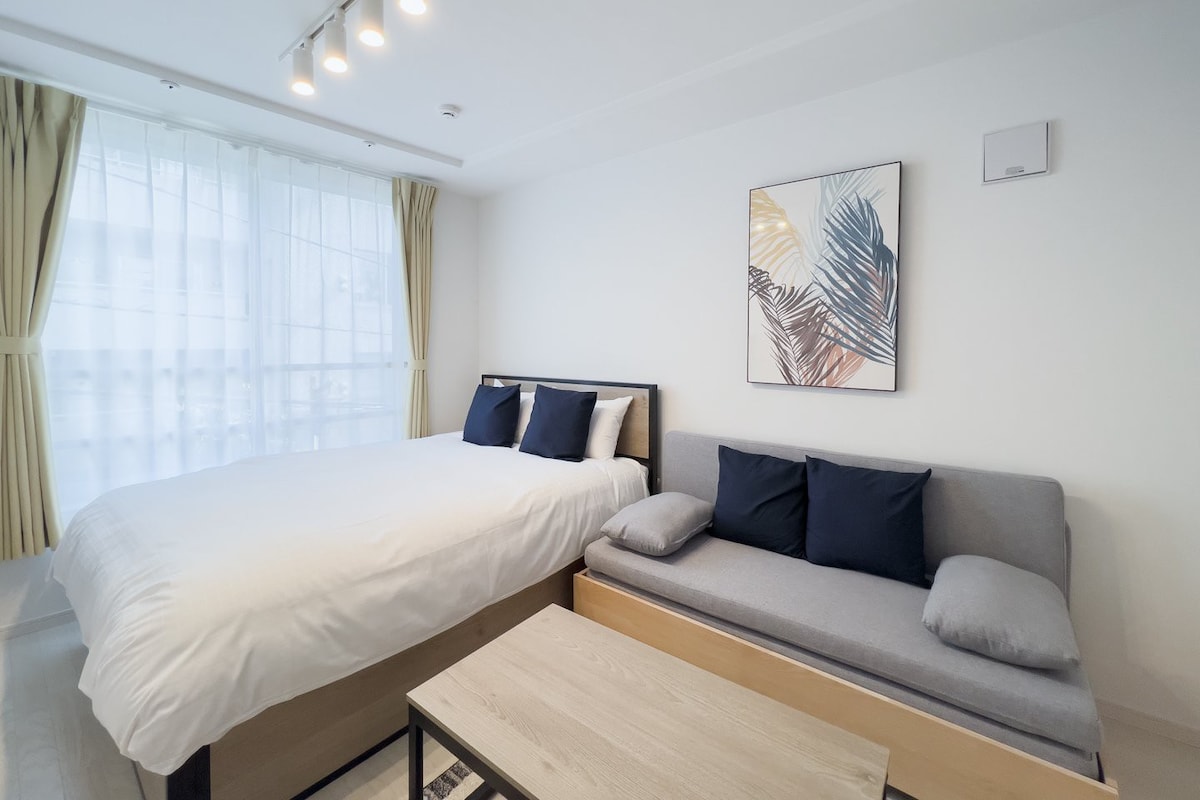 Experience the feel of a standard-sized Tokyo apartment in this deluxe studio for 2. Enjoy restful nights on a queen-sized bed and a functional layout ideal for remote work. Whether you're balancing work and wellness or simply unwinding, this space is a great urban sanctuary.