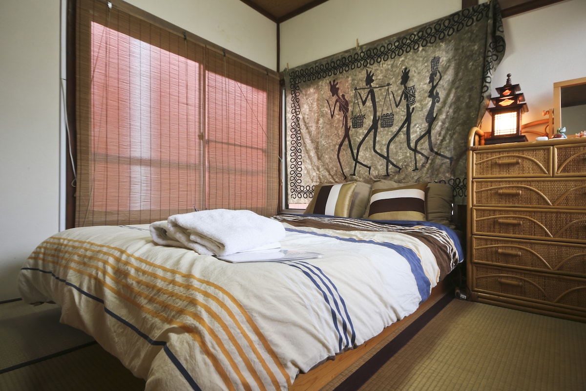Total of 56sq m, small cozy Japanese House easy to access to central Tokyo such as Shinjuku, Shibuya, has asian style living room and kitchen, 1 bath, toilet, asian style living room, kitchen. Your bed room & living room are on 2nd floor, toilet , bathroom and kitchen is on the first floor. If you have big bag, you can leave on 1 F, my office as my room at first floor , work between 10:30-15:00 weekday It suits for 2 people but 3rd person can be stay in the living room, provide Futon mattress.