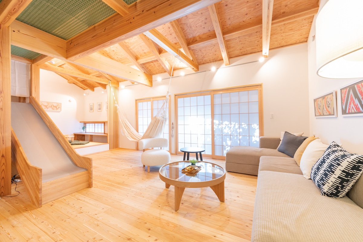 150㎡の開放感あふれる広々とした日本伝統建築の和の空間が魅力の邸宅での特別な宿泊体験。一歩足を踏み入れた瞬間から日常を忘れる贅沢な時間が始まります。 4つの寝室に8台のベッド、空気を感じながらゆったりとくつろげる露天風呂に加え、シャワールームとトイレをそれぞれ2つ完備、ゲストの一人一人が旅の疲れをゆっくりと癒し、翌日のアクティビティに向けて心も身体も万全に整えることができます。 室内にハンモック、ボルタリング、滑り台を備え、お子さまはもちろん、大人も童心に帰って夢中になれる遊び心あふれる空間です。大型スクリーンで楽しむ映画鑑賞はまさに圧巻。ご家族やご友人とシアタータイムをお楽しみください。 渋谷、恵比寿、六本木まで約20分と都心へのアクセスが良く、家の周辺には多数の美味しいレストラン、徒歩3分に何でも揃う24時間スーパーがあります。家の目の前には緑豊かな大きな公園があり散歩やジョギングを楽しんで頂けます。 「泊まる」だけではない、過ごす時間そのものが思い出になる場所。ここでしか叶わない、贅沢で心躍るステイをお約束します。