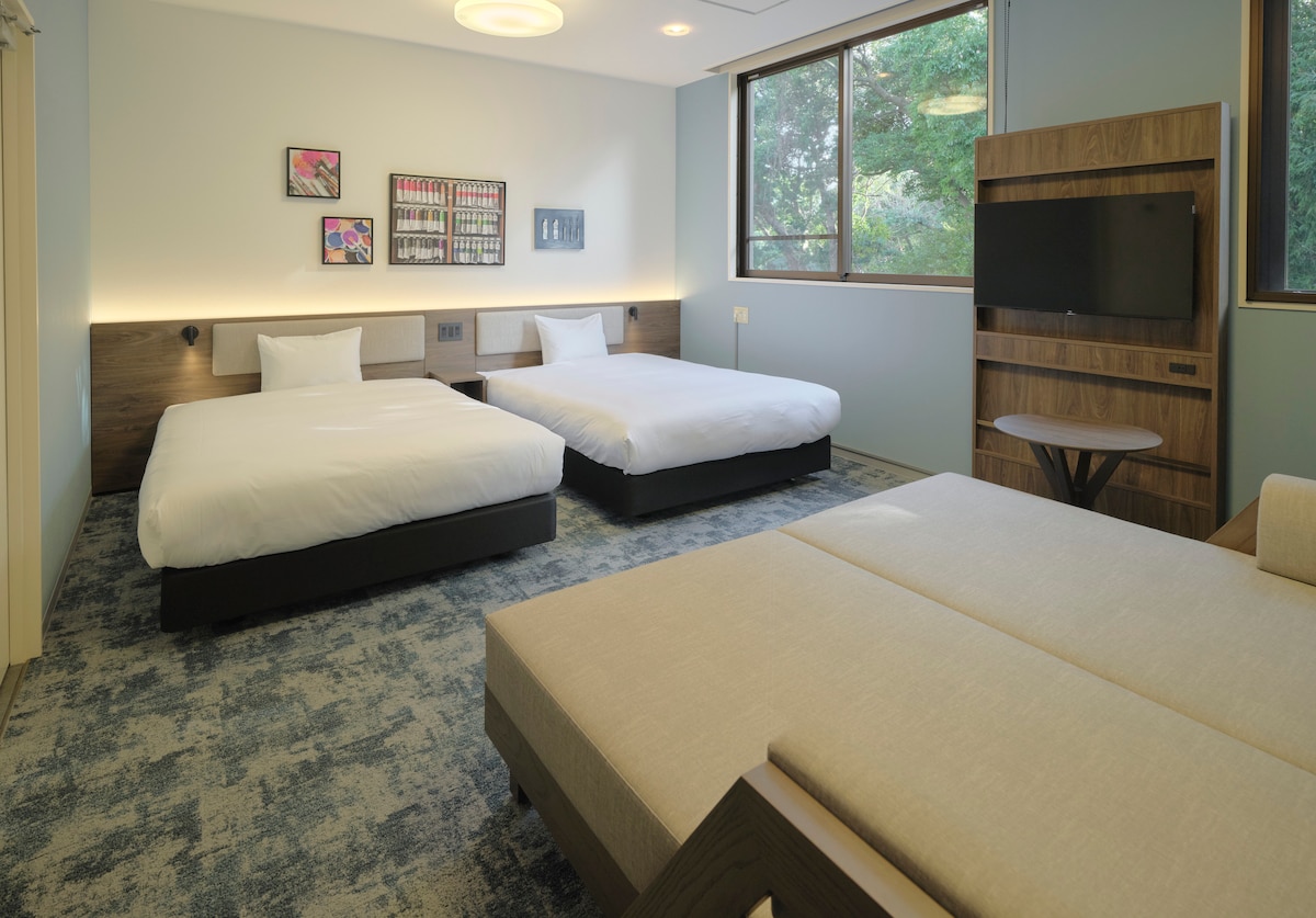 RED28 is an accommodation facility located in a quiet, nature-surrounded setting where you can refresh both your mind and body. Guests can enjoy a relaxing lounge and a game lounge free of charge. In addition to the guest rooms, you can also have a great time in the shared spaces. The rooms are designed as comfortable, casual spaces with an artistic touch. An ideal base for a relaxing trip. Enjoy your stay with your partner, friends, or as a couple.