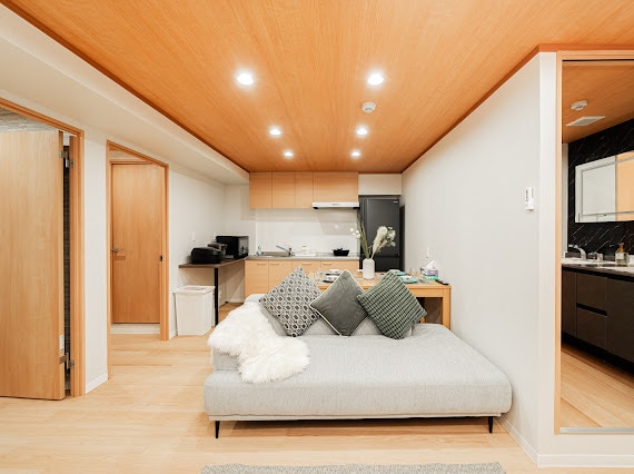 走进这间位于东京墨田区、晴空塔附近的一楼新公寓,浅木色的空间与柔和灯光交织,带来放松与温暖的居住体验。 房源布局 • 宽敞客厅 舒适沙发与电视,让旅途的片刻闲暇变得轻松愉快。 • 开放式厨房 配备基础厨具、餐具、电热水壶、冰箱、微波炉等家电,适合偶尔动手做一顿温馨的家常饭。 • 两间独立卧室 各配备 1.6m × 2.0m 的大双人床,柔软舒适,布置清新现代,让人一进门就倍感放松。 • 卫浴设备 • 干湿分离设计,保持空间整洁清爽。 • 设有浴缸与独立淋浴间,可在旅途中舒缓身心。 • 双洗面台设计,让早晚梳洗更高效。 • 配备一次性牙刷、吹风机等基础洗漱用品。 • 洗衣机带烘干功能,出差或长住也能轻松应对洗衣需求。 舒适便利的地理位置 • 步行范围内有便利店、超市、咖啡厅、地道日式餐厅。 • 步行约3分钟即可到达东京晴空塔与晴空塔城购物中心 • 交通便利,可轻松前往浅草、上野、秋叶原等热门区域 房源特色 • 全新装修,温馨明亮 • 双卧设计,适合家庭、情侣或朋友同行 • 一楼户型,无需爬楼,出入方便 • 免费寄存行李室