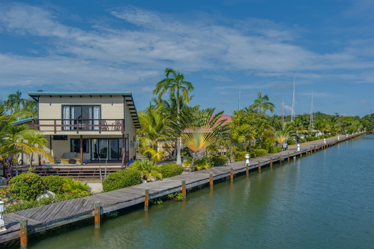 WE HAVE JANUARY SPECIAL RATES! Ophelia’s Villa is a 3-level luxury lagoon front home located in a quiet residential area of Maya Beach, Placencia- just 300 yards from beach access and steps away from dining, beach bars, and local resorts. Enjoy the laid-back vibe of the Placencia Peninsula, a gem in southern Belize known for its natural beauty, culture, and adventure. Getting here is an easy short domestic flight or a 2 hr drive from Belize Int’l airport. We're here to help with options.