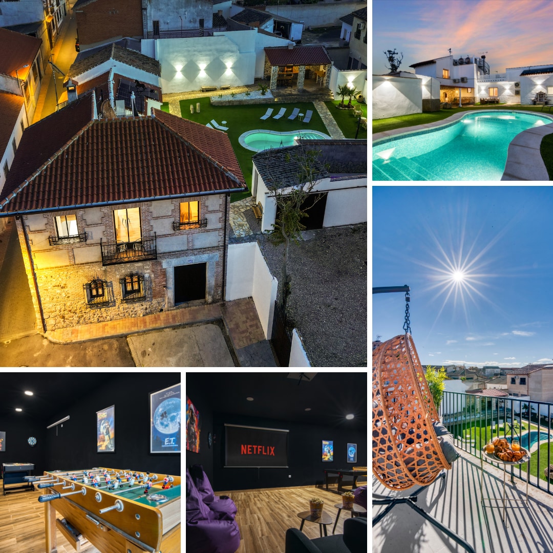 Escape to this exclusive luxury countryside retreat,nestled in a private natural setting just 35 minutes from Madrid Enjoy the perfect blend of peaceful sophistication and city convenience Ideal for families, groups,and special celebrations, this elegant home features: • Refreshing pool and two beautiful gardens • Impressive wine cellar and authentic BBQ area • Unique, photogenic spaces—perfect for content creators Celebrate,relax, and create unforgettable memories in a truly unique experience