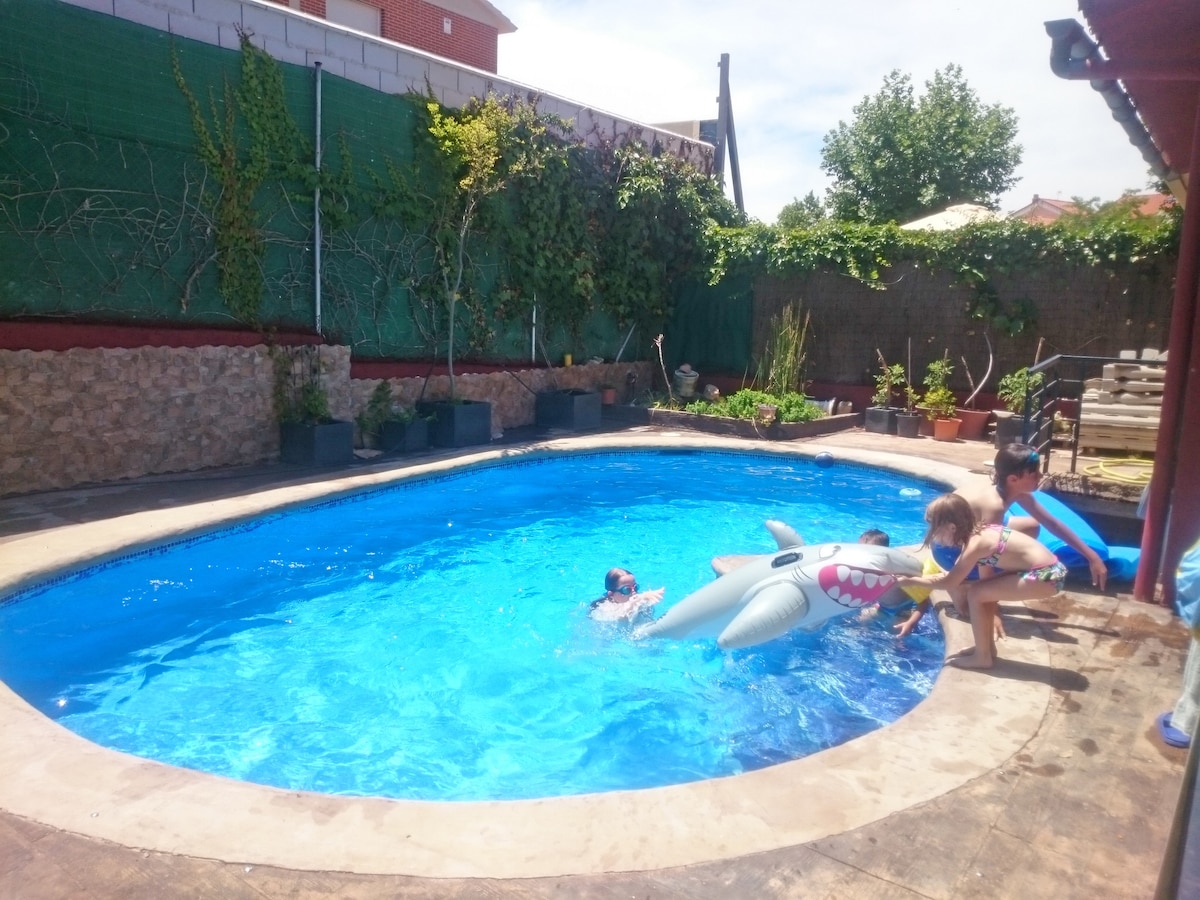 Precioso chalé, ideal para escapadas de fin de semana o vacaciones. Disfruta de la naturaleza majestuosa del Valle del Tiétar mientras transitas por sus amables senderos. Hay rutas para hacer a pie o en bici. Descubre sus piscinas naturales, sus puentes románicos y ¡cómo no! el Castillo de La Adrada, sede de multitud de eventos culturales durante todo el año. En verano disfrutarás de su piscina privada, y en invierno, de su chimenea. La parada del bus está a 5 minutos andando desde La Adrada.
