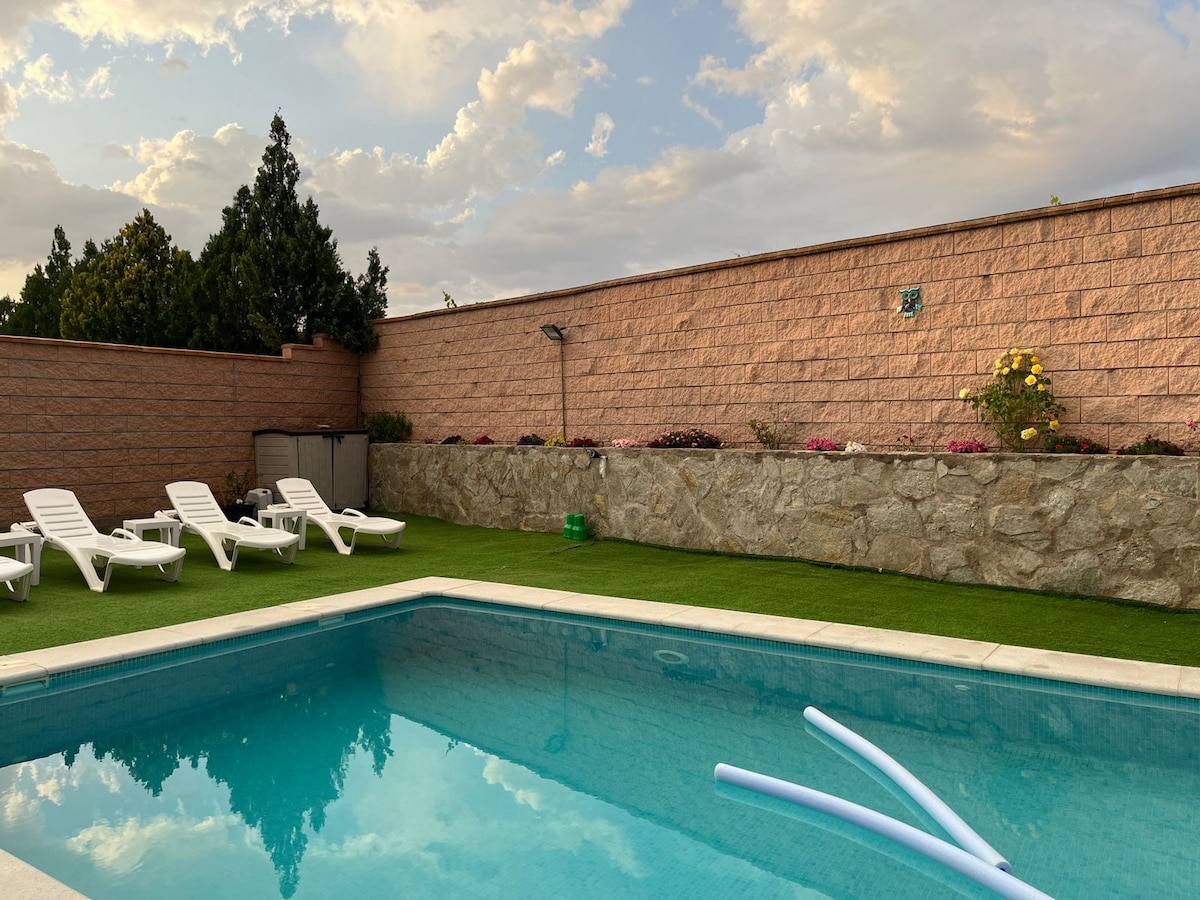Chalet ideal para familias, a 30min. de Madrid y 30 de Toledo. Cuenta con Piscina, Jardín, Barbacoa y Porche para disfrutar de comidas al aire libre, cocina abierta con nevera americana. Tiene 4 habitaciones + 3 baños, Sótano con camas, mesa de ping pong, futbolin, dardos y juegos. Ideal para desconectar y pasarlo bien. Cerca a 2 parques, polideportivo, paseos por el campo, supermercados Dia. Unide y tiendas. Cerca a Puy du Fou, Centro Comercial Xanadú. Abtenerse grupos que hagan fiestas