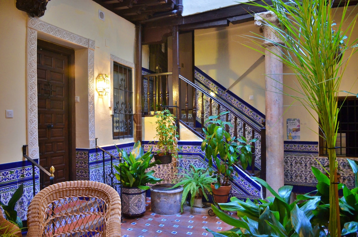 Disfruta de una experiencia de lujo en este céntrico alojamiento para cuatro personas. En el corazón de Toledo a 50m de la Catedral y la Plaza del Ayuntamiento, con todo lo necesario para hacer de tu estancia una experiencia inolvidable. Contamos con una patio exclusivo con ducha exterior, aire acondicionado en todas las habitaciones, cocina totalmente equipada, secador de pelo, plancha, TV con smartv, wifi, juegos de mesa. Disponemos de cuna de viaje y trona si es necesario.