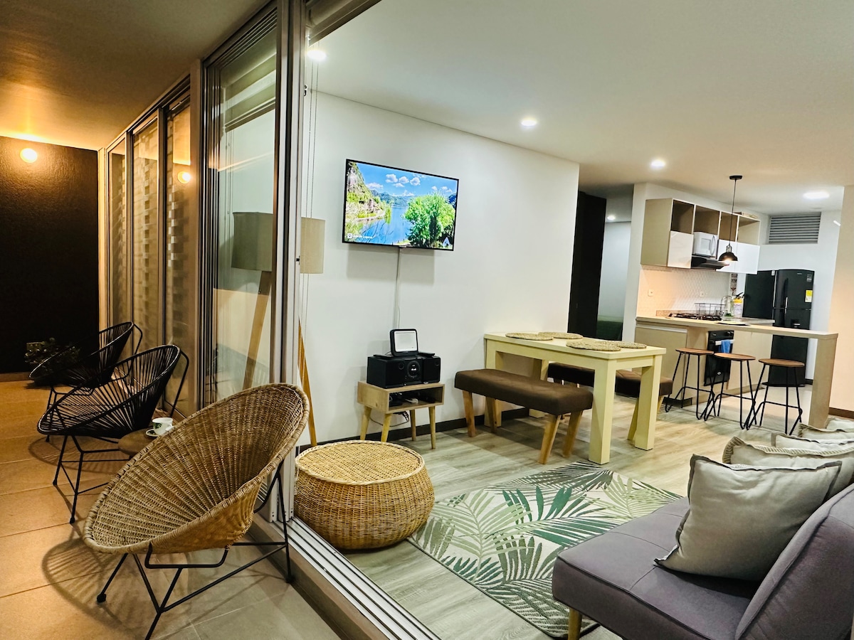 Apartamento con todas las comodidades en Pereira, ubicación privilegiada en la circunvalar, en edificio moderno, cerca al centro comercial Arboleda, al lado del "Club del Comercio", con aire acondicionado (Pereira es una ciudad de clima cálido), TV de 65 pulgadas, ventanas insonorizadas, cama queen, parqueadero cubierto privado y todas las comodidades para tu estadía óptima en el eje cafetero. Estratégicamente ubicado, a poca distancia de restaurantes, cafés, supermercados y vida nocturna