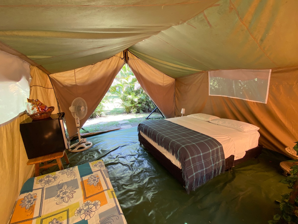 Disfruta de un espacio en una granja, lleno de naturaleza con una experiencia de hospedaje en camping pero bajo nuestra estructura en guadua, mayor percepción de los sonidos nocturnos de la naturaleza pero alejado de los peligros y la interperie, en plataformas protegidas de la lluvia y de las inclemencias del clima, con elementos de comodidad qué hacen su estadía placentera.