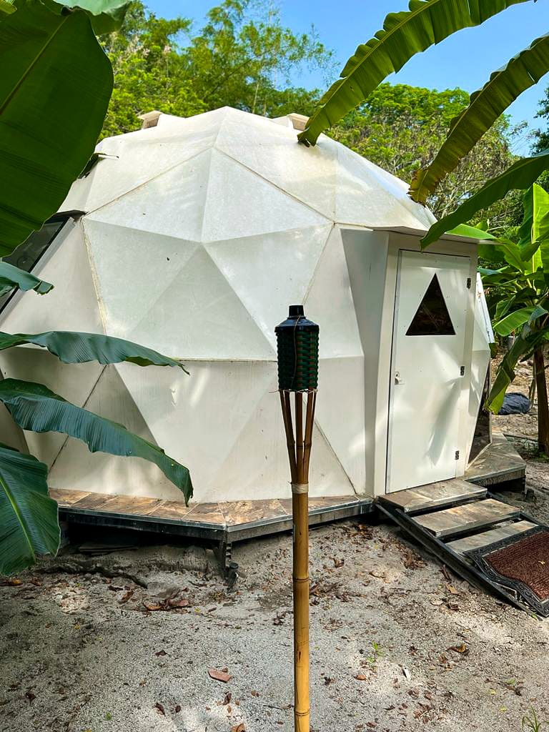 Domo geodésico sumergido entre la naturaleza, el canto de la aves, el brillo de las estrellas, una ducha a cielo abierto, hamacas y cama balinesa, un hidromasajes, BBQ Kamado Visión Grills, mirador al valle, cielo luna y estrellas son el lugar perfecto para compartir esta experiencia con tu pareja. Camina descalzo y ofrece a tus pies la sensación de recibir suaves masajes del césped ornamental. Con una carta variada de platos y licores nada les faltará para un inolvidable encuentro romántico