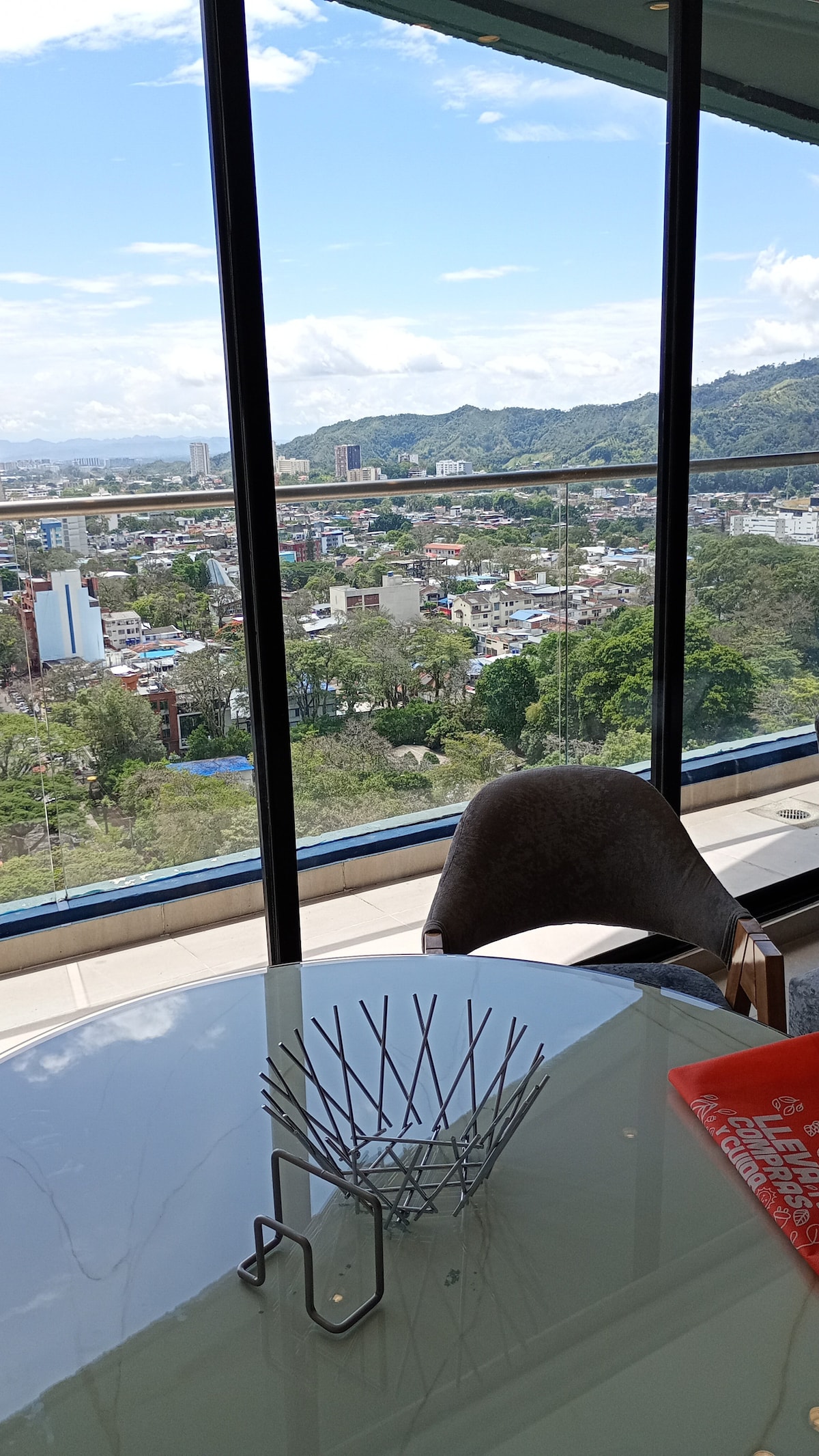 Apartamento ubicado en exclusivo sector, cerrito. Con tres habitaciones, dos bańos y zona social. La sala tiene sofacama y televisor de 58 plg, el cuarto ppal con su TV, muy bien dotado, con nevera, lavadora, comedor de 6 puestos los utencilios de la cocina; de esta manera puede tomarse un delicioso cafe sentado en el mirador de un 10 piso viendo la naturaleza que le ofrece este hermoso sector. El Conjunto cuenta con piscina, zonas humedas, cancha de squash y gimnasio. Cerca al parque Ukumari.