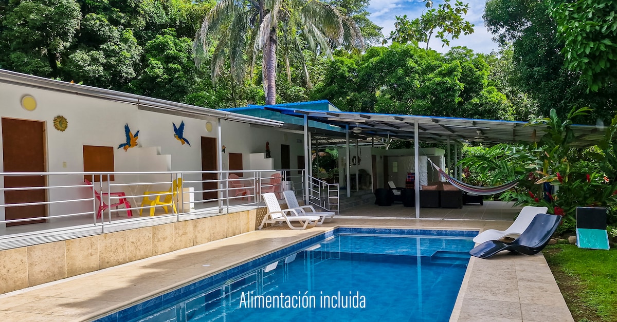Te encantará la decoración elegante de este encantador lugar para quedarte. Relájate en este espacio tranquilo y elegante. Desconectate de tus preocupaciones en este espacio amplio y sereno. Podrás respirar el aire puro y el sonido de las aves provenientes de la reserva natural que se encuentra a solo unos metros del alojamiento. Te alojaras en un lugar moderno y recién remodelado. Cuenta con tina privada de agua caliente, piscina compartida y Jacuzzi compartido.