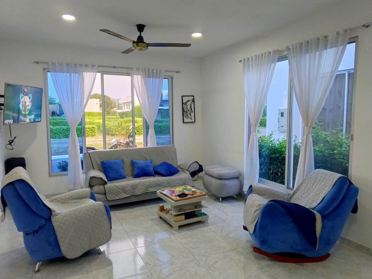 Hermosa casa en exclusivo condominio con vigilancia 24 horas. Disfruta de bellas vistas, el canto de los pájaros y el aire fresco mientras compartes momentos inolvidables con familia y amigos. Aire acon Nuestra casa cuenta con energía solar, garantizando electricidad durante fuertes lluvias que pueden causar cortes de luz en la zona. Podrás realizar actividades al aire libre como caminatas ecológicas, montar bicicleta, nadar, hacer BBQ o asados en horno de barro El apoyo doméstico es adicional.