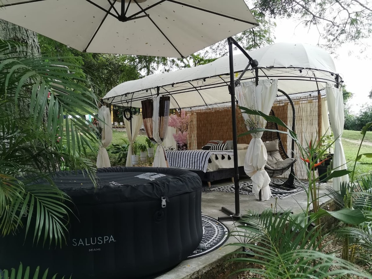 ✨ Glamping Oasis en el corazón del Quindío✨ -Cama king - Luz ambiente -proyector 100” - mini bar - sala - black outs - terraza - malla catamarán - jacuzzi con hidromasaje y cascada - baño vista panorámica - incluye desayuno Ventajas - A borde de carretera - Restaurante - Piscina - Senderos mágicos - cascadas - Zona wifi - parqueadero - Cerca Barcelona Quindío, Buena vista, Pijao - Cerca Parques turísticos Recuca, Panaca y parque del café