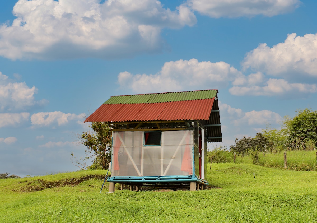 Connect with nature on this unforgettable getaway just 10 minutes away from the beautiful town of Filandia, Quindío. An exclusive space designed and attended by its owners. Our glamping is equipped with a King bed, private bathroom integrated into the room with hot shower, high comfort furniture, hammock area, terrace and meditation area. Spectacular panoramic views, a romantic atmosphere to relax and enjoy as a couple.