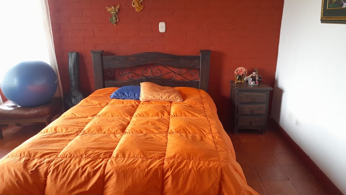 Recently renovated house in a vibrant and safe neighborhood of Pereira. It can accommodate a large family in 4 bedrooms: 2 double bedrooms (1 downstairs), 1 with twin beds and 1 with a single bed. The house has an amazing working space, fast internet, a living room with tv, a fully equipped kitchen, two full bathrooms, hot water and parking for a small car. Parking outside is also possible without problems. NOTE THAT the number of bedrooms open will depend on the number of guests in the booking