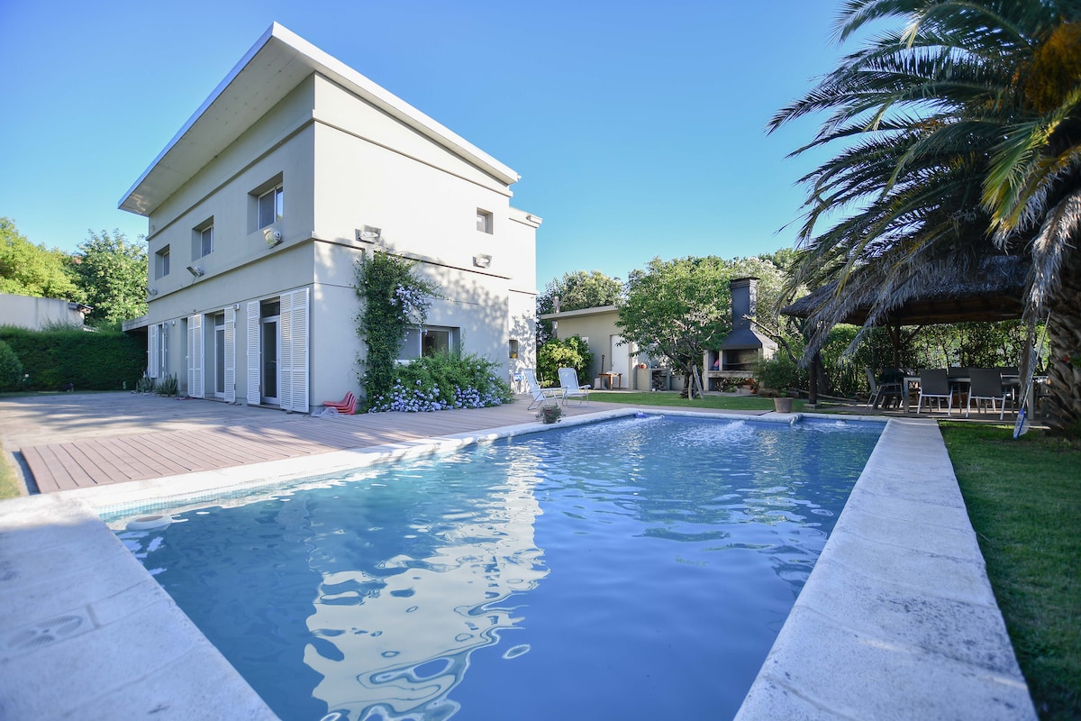 Divertite con toda la familia en este alojamiento con estilo. Rodeado de verde y súper tranquilo, relajate en la pileta y disfrutá de un asado, este lugar tiene todo para que tu escapada sea perfecta e inolvidable. Con un diseño exquisito, cocina super equipada y un parque muy bien cuidado, este espacio invita a vivir momentos especiales en familia o grupos de amigos.