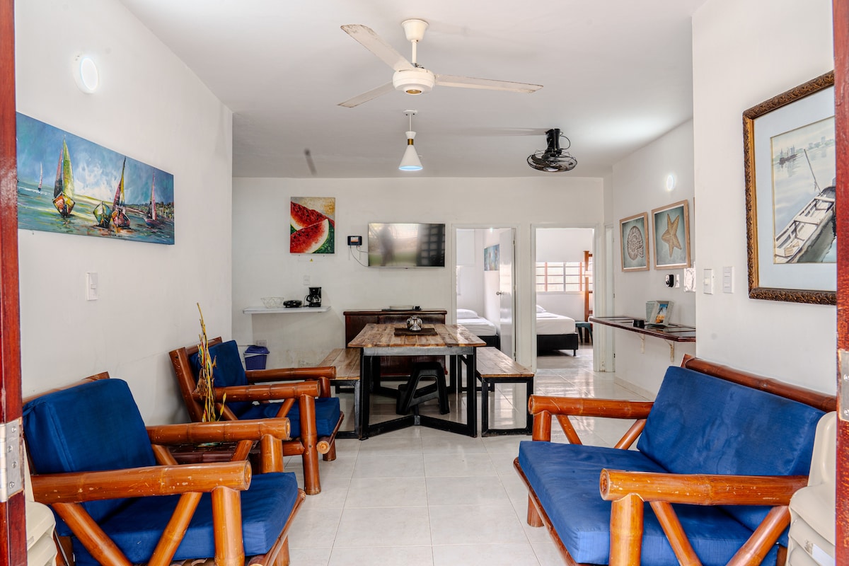 Apartamento en conjunto cerrado con todas las comodidades a sólo 5 minutos en auto o bus de Tolú. Cuenta con: cocina equipada, sala con sofácama y TV, aire acondicionado en habitación, con dos camas dobles y baño privado. Acceso directo desde el conjunto a la playa.