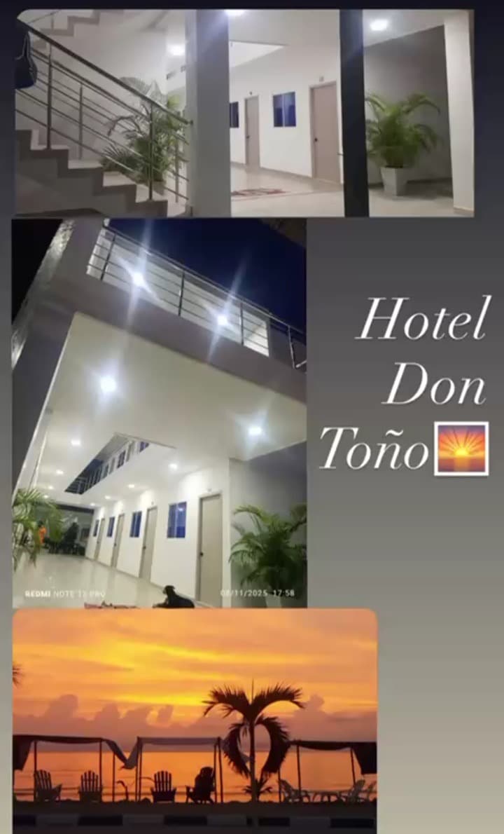 Hotel Don Toño Tolú está ubicado en Santiago de Tolú, al frente de las hermosas playas del Golfo de Morrosquillo. Dispone de alojamiento con jardín, parking y terraza. Ofrece servicio de restaurante, Bar, Tour a las islas del Archipielago de San Bernando, wifi gratis en todo el alojamiento. En el hotel, las habitaciones están equipadas con escritorio, TV de pantalla plana, baño privado, ropa de cama y toallas. Las unidades de este alojamiento disponen de aire acondicionado y armario.