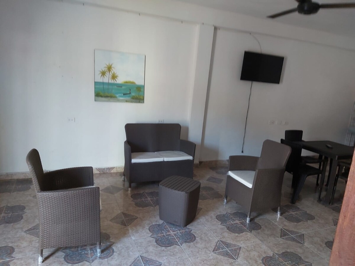 Hola!! Soy Patty,te sugiero que antes de reservar leas descripción y reglas para asegurarte que es el lugar ideal para ti Capacidad Máx.6 huéspedes Lllegada 15-21 hrs y salida 10 Am (Flexibles,coordinar antes) Lindo apto.muy central, cocina,nevera,ventilador, TV,cada habitación con 1 cama nido matrimonial, aires, NO WIFI, Playa La Coquerita a 5 minutos a pie, cerca a supermercados, banco, tiendas, ideal para visitar distintos lugares del Caribe, pues te puedes movilizar fácilmente.