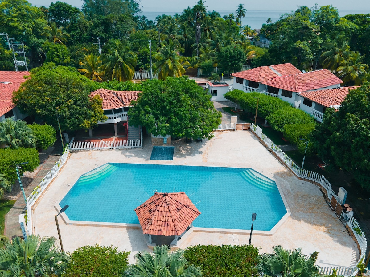 Disfruta de una Villa moderna en ILUKA VILLAS RESORT 🌴, cada una equipada con A/C ❄️, cocina 🍳, PISCINA PRIVADA 🏊‍♂️ y parking privado y gratis 🚗, todo diseñado para tu comodidad. 📍 Ubicación privilegiada: a solo 3 minutos a pie de la playa 🏖️ 🛍️ Todo en un mismo lugar: restaurantes, farmacia, cajero servibanca, heladería y licorera 🍽️💊🍷 NOTA: Tarifa de aseo final, no incluida en la tarifa Airbnb.