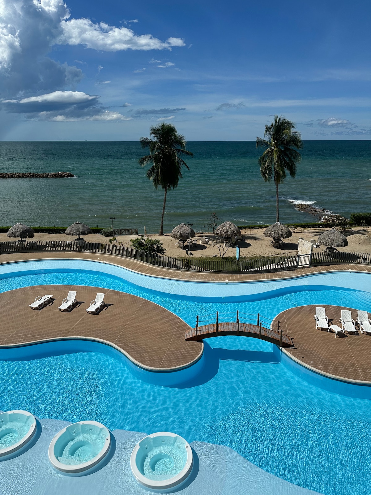 EcoHotel Laguna Beach Espectacular, lujoso apartamento, frente al mar, 7 personas, 3 habitaciones confortables y 3 baños privados, 3 Aires A. terraza con sala comedor y jakussy opcional , club de playa, con 3 piscinas y 8 jakussy, bar, Restaurante playas con un hermoso mar azul cálido con kiosko privado y sillas de playa, rodeado de una hermosa vegetacion y lagos, con hermosos atardeceres multicolores, puedes ir a las Islas, rentar yate, Velero, Vive la experiencia única en este paraíso.