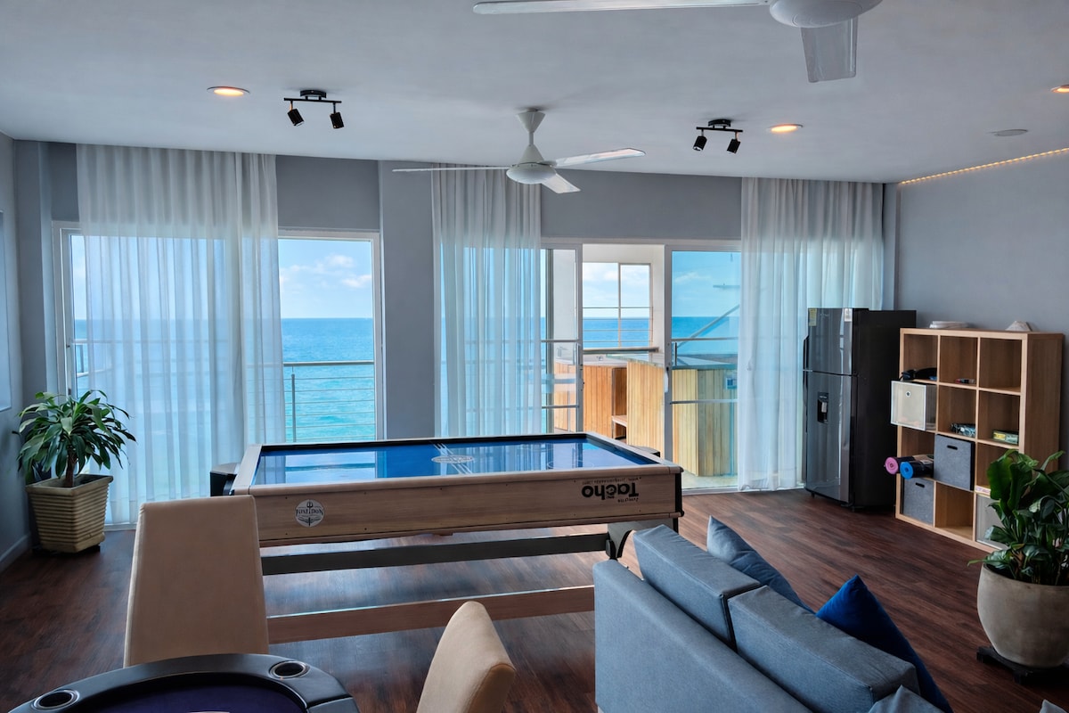 ¡Bienvenido al paraíso frente al mar! Este acogedor apartaestudio es perfecto para parejas que buscan una escapada romántica. Con decoración moderna, cocina totalmente equipada y acceso directo a la playa, disfrutarás de días de sol y noches de brisa marina. Relájate en el cómodo sofá mientras disfrutas de la vista al mar o explora los encantadores restaurantes y tiendas locales a poca distancia. ¡Reserva ahora y crea recuerdos inolvidables en la playa 🏖️!